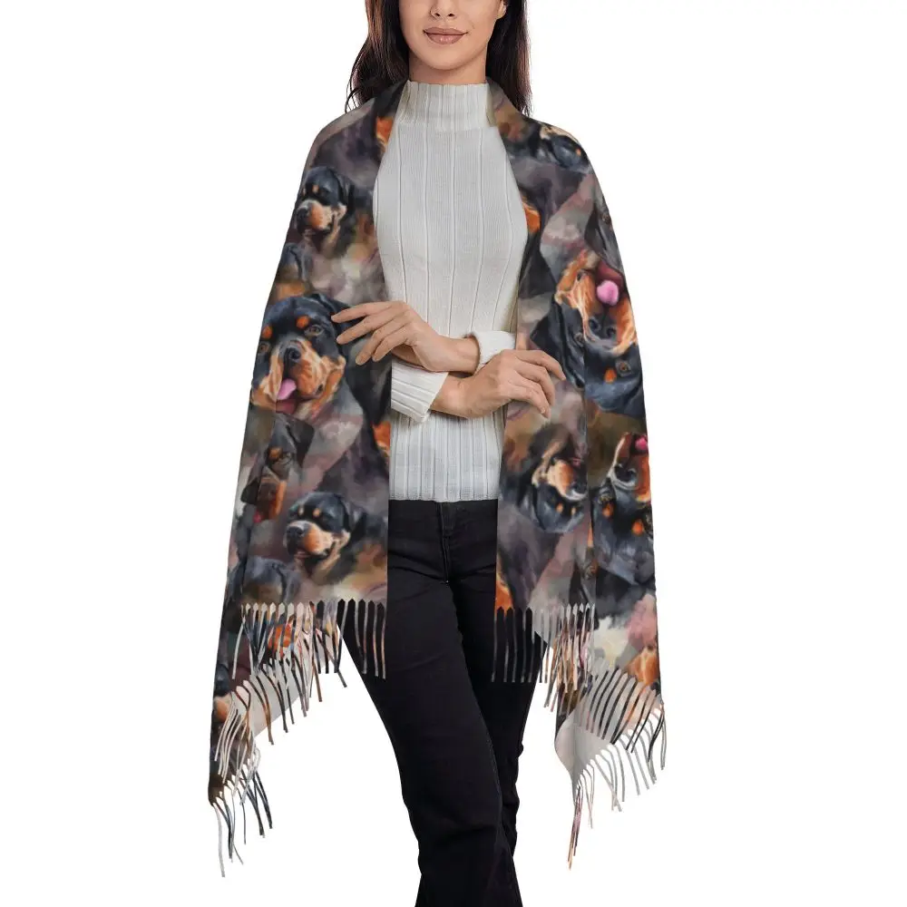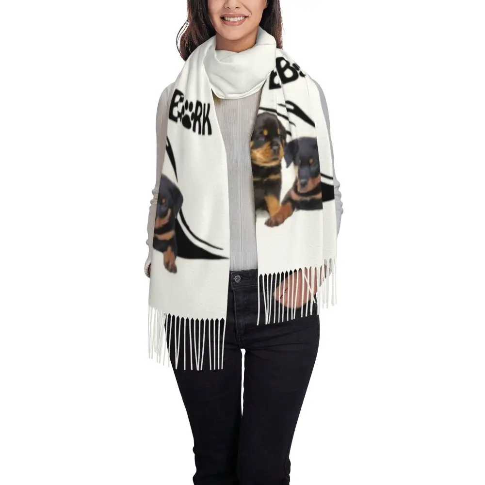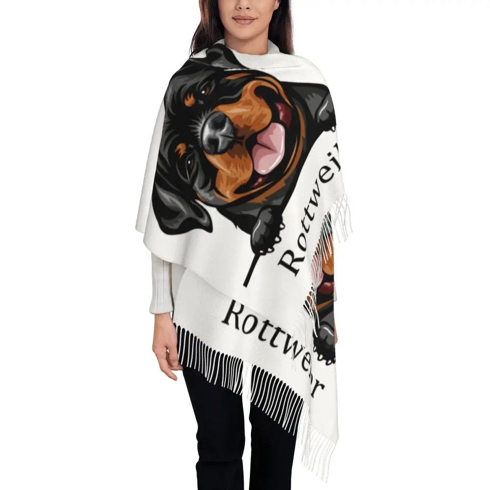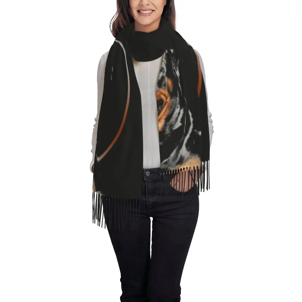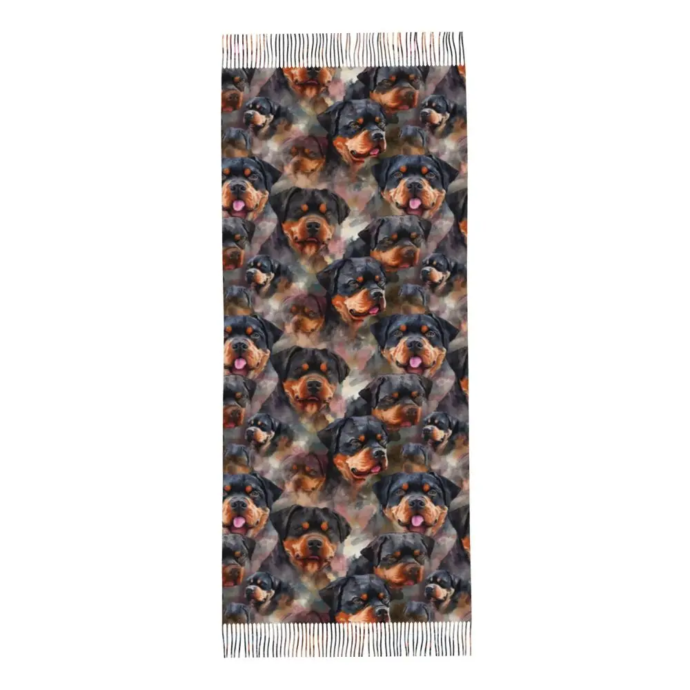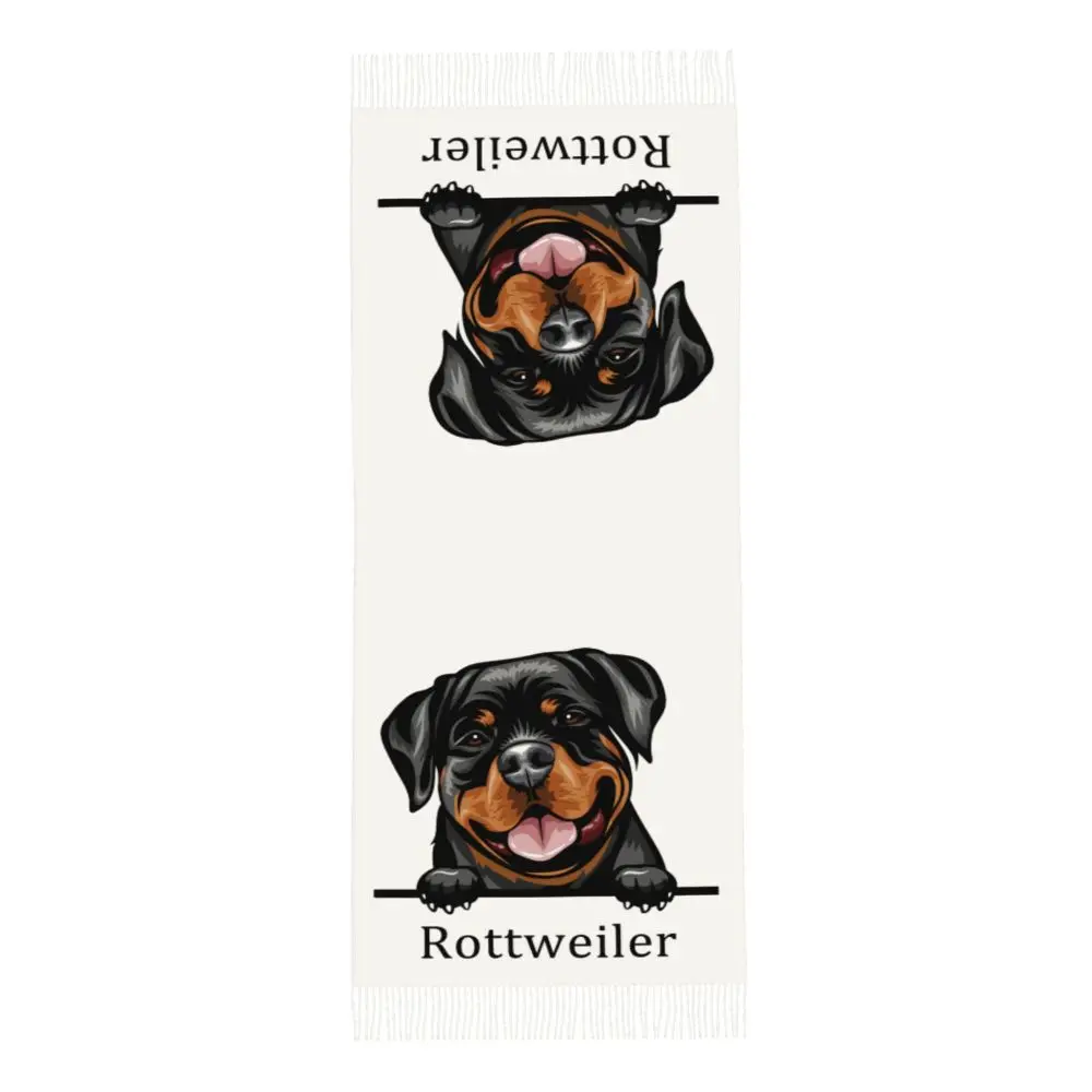 Custom Cute Funny Rottweiler Dog Tassel Scarf Women Soft Animal Shawl Wrap Ladies Winter Fall Scarves