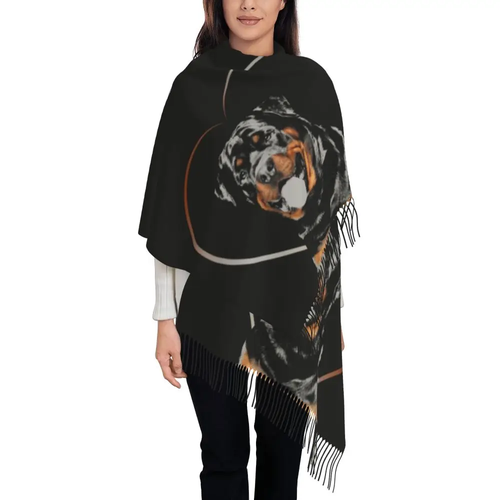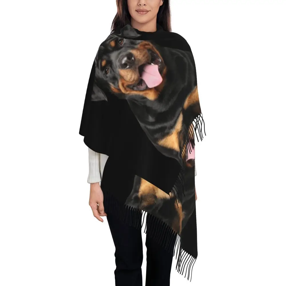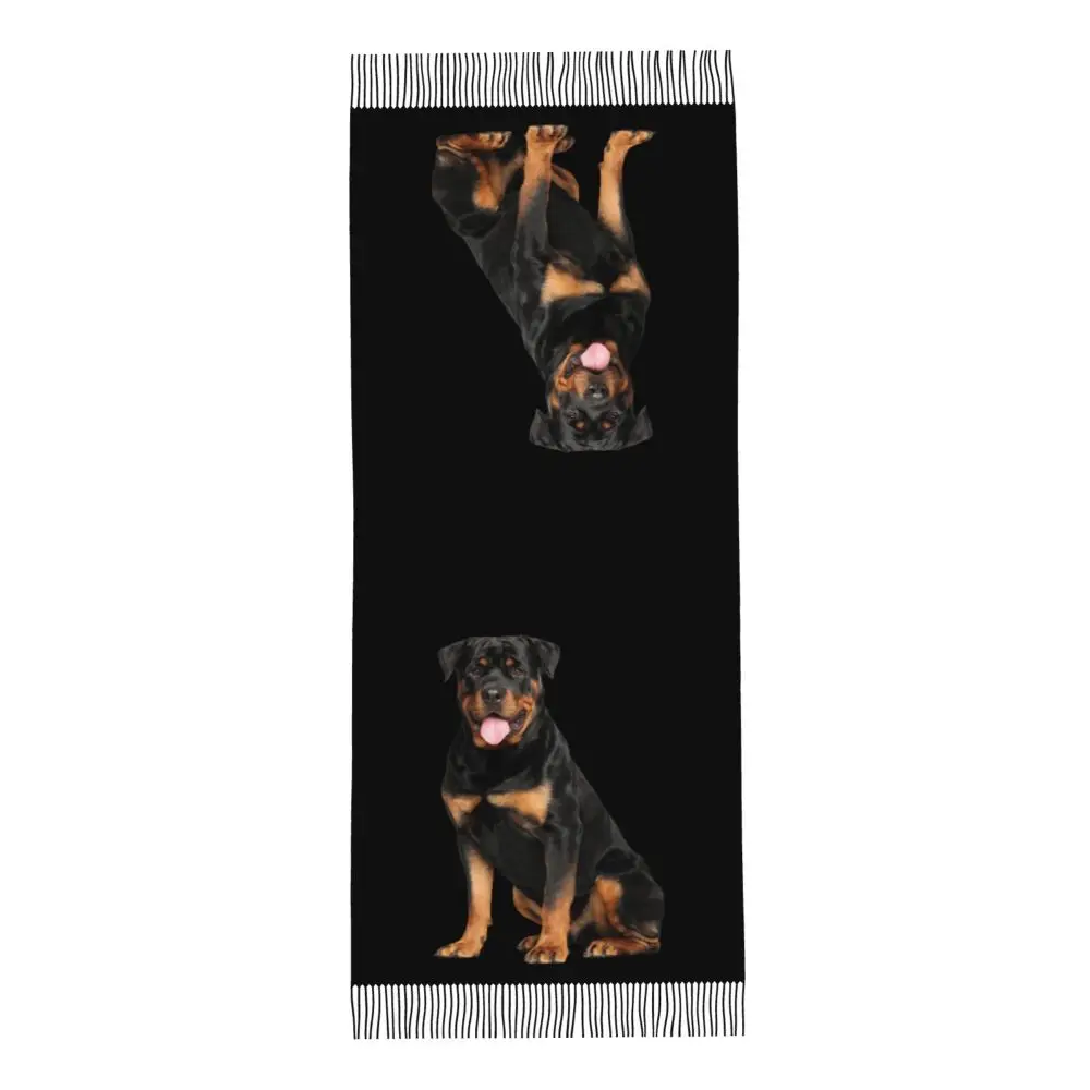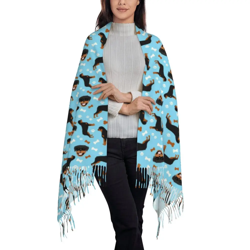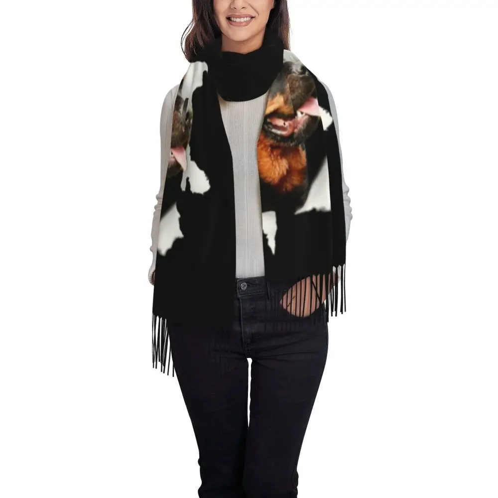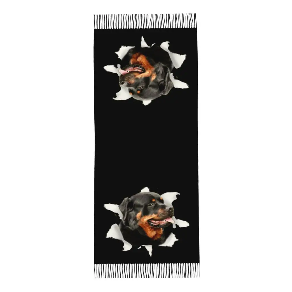 Custom Cute Funny Rottweiler Dog Tassel Scarf Women Soft Animal Shawl Wrap Ladies Winter Fall Scarves