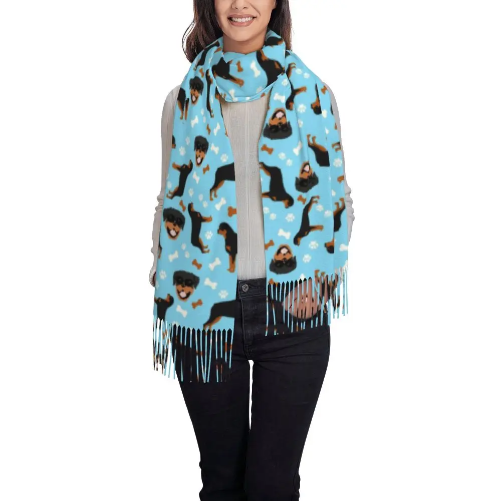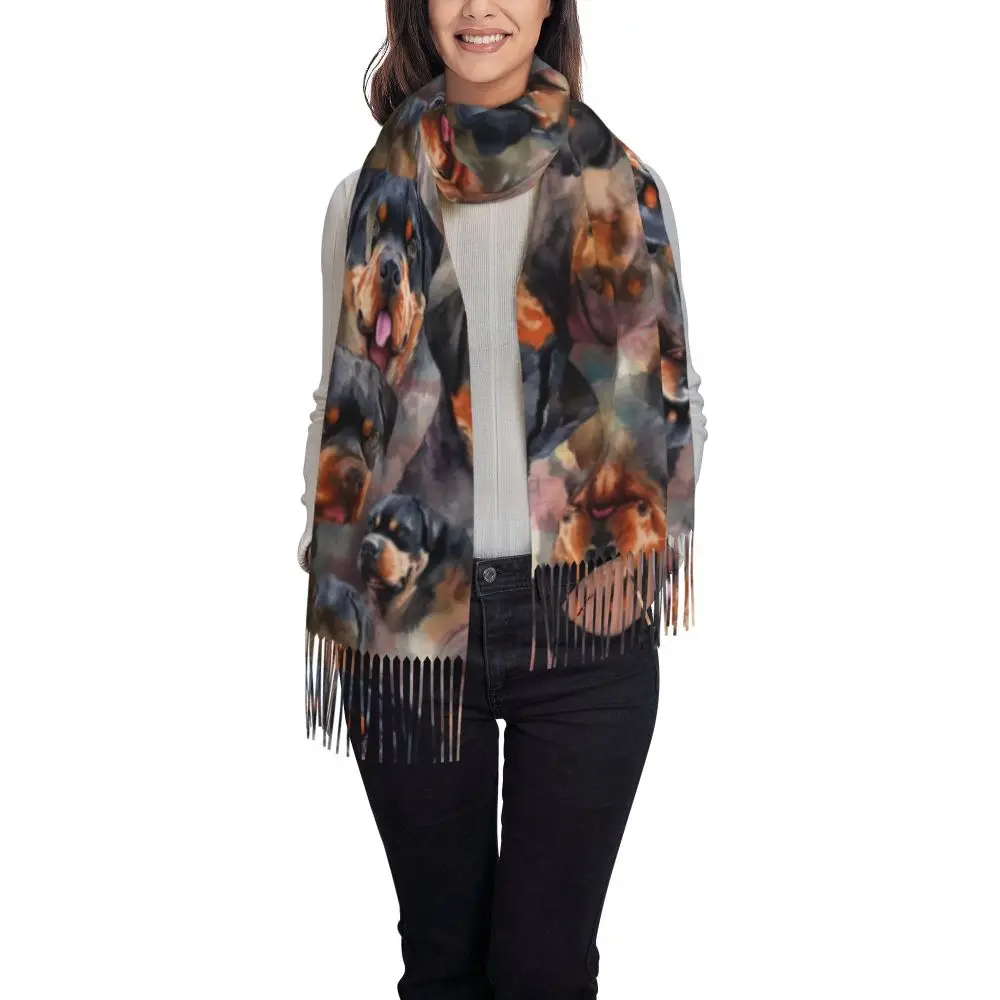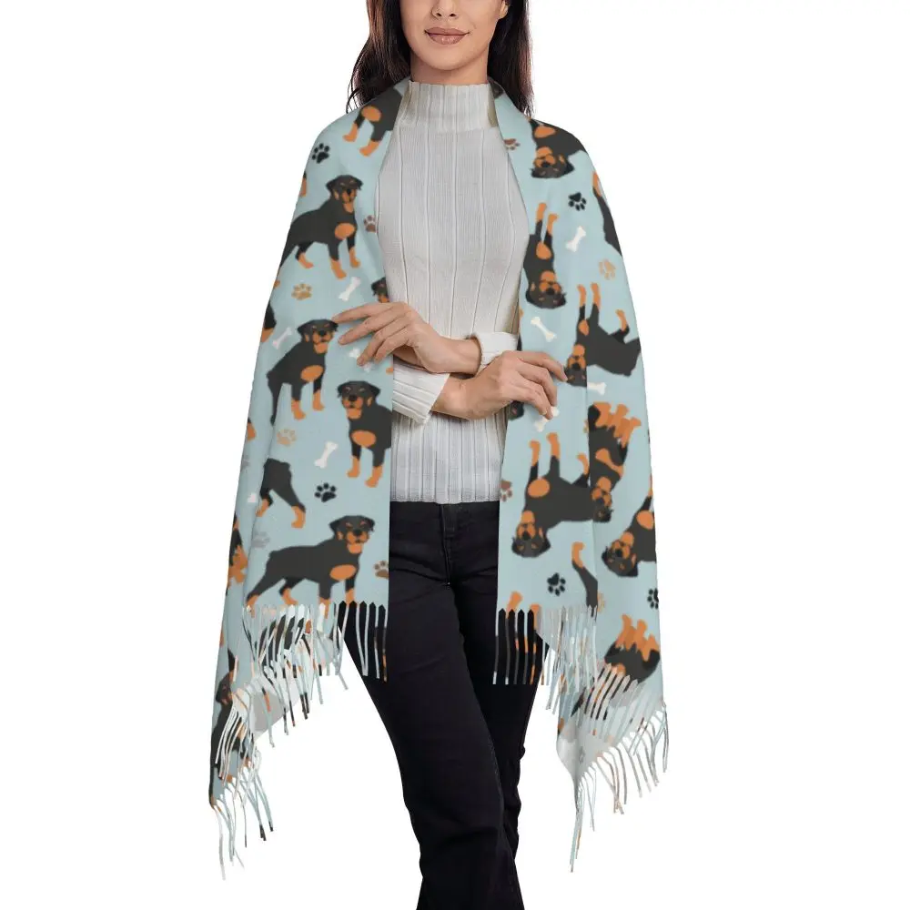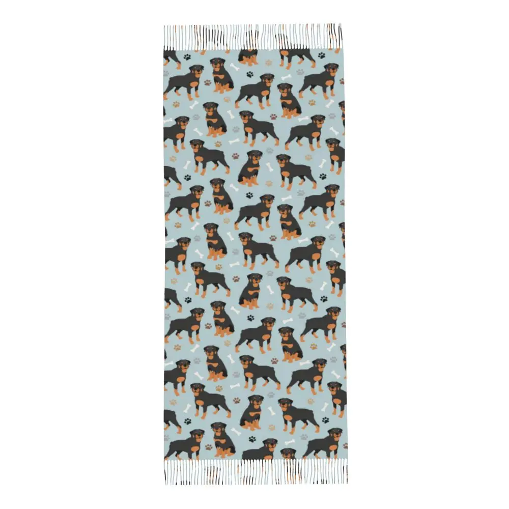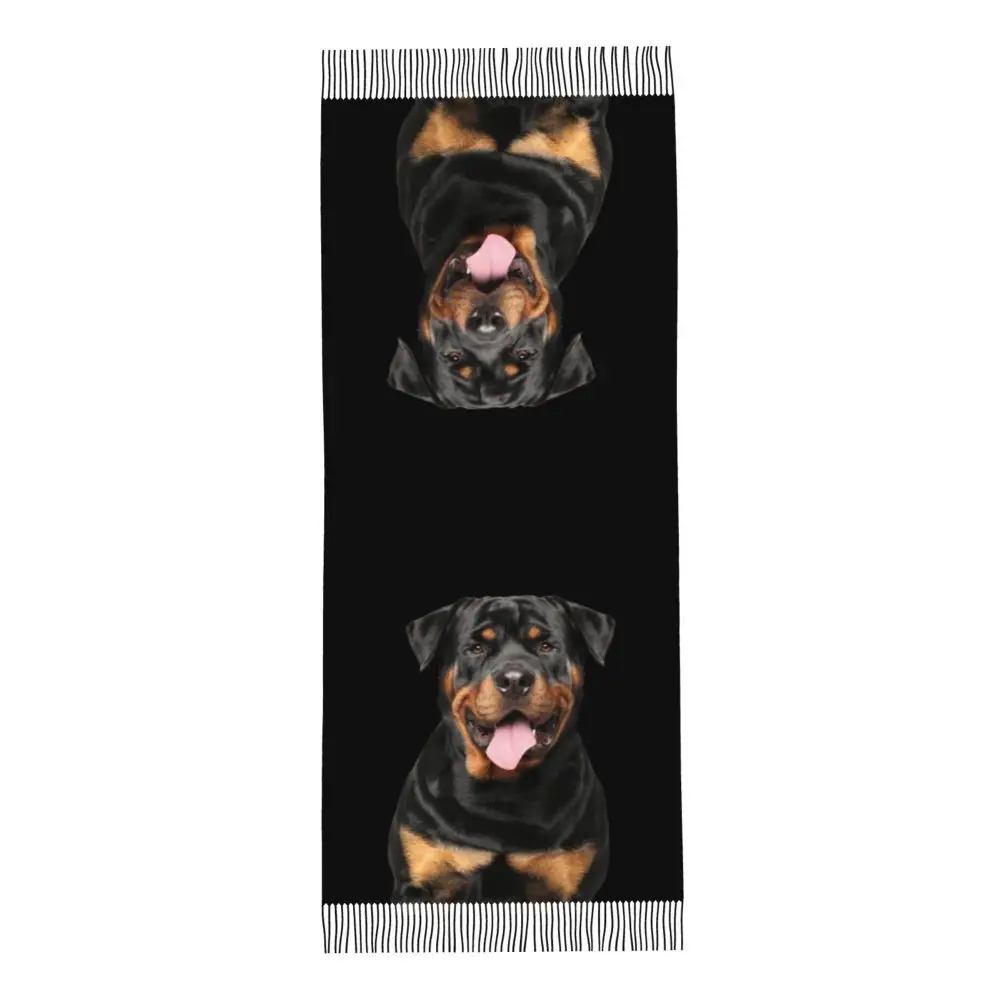 Custom Cute Funny Rottweiler Dog Tassel Scarf Women Soft Animal Shawl Wrap Ladies Winter Fall Scarves