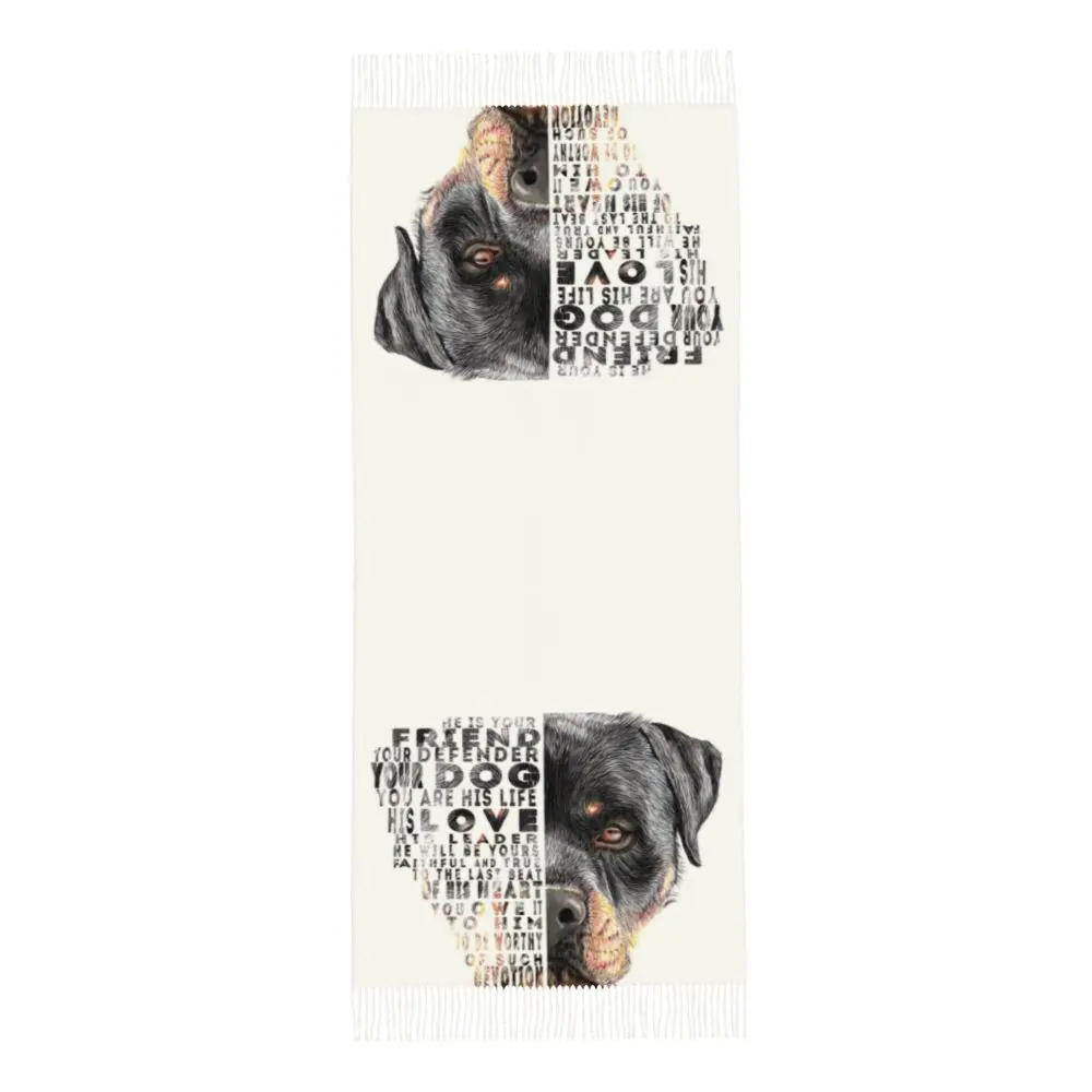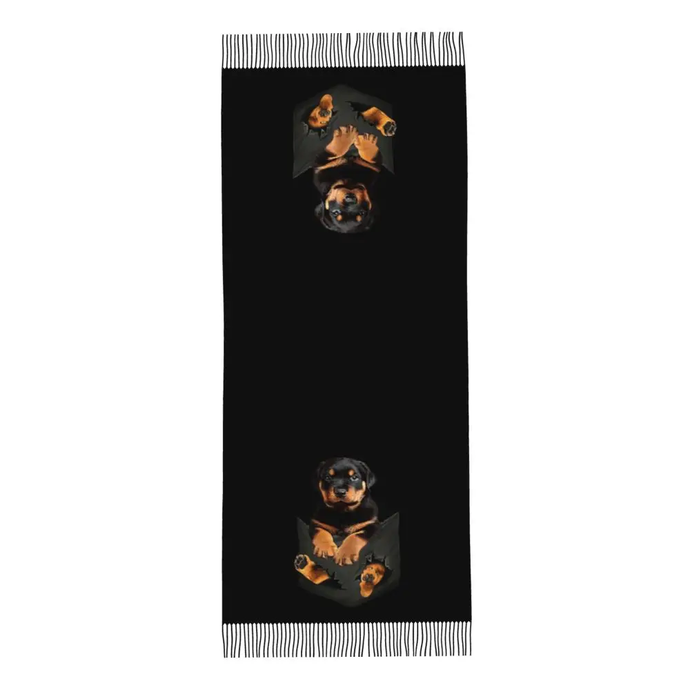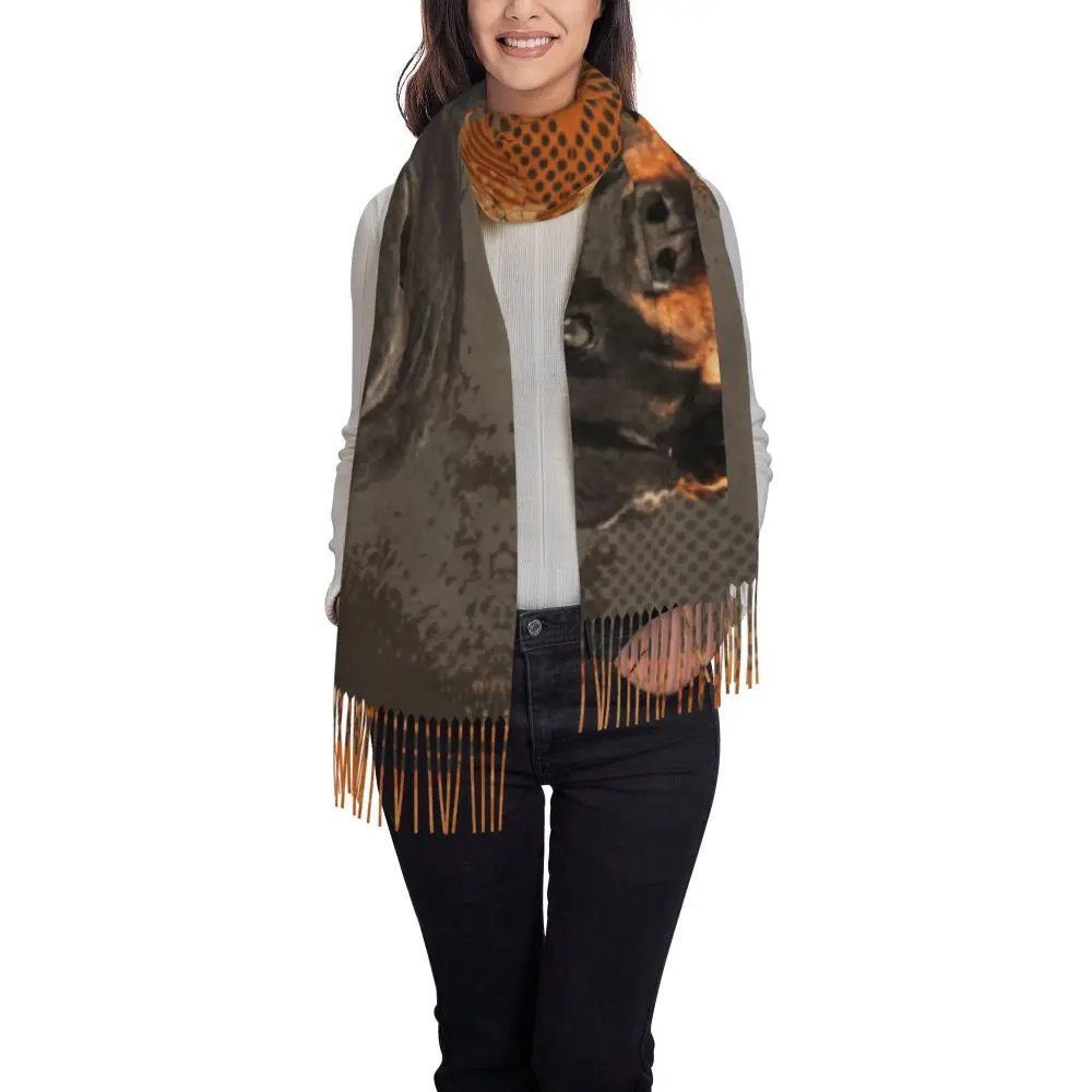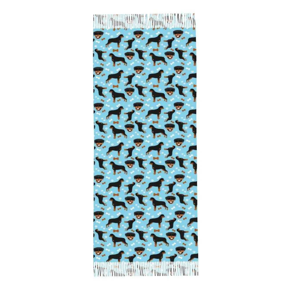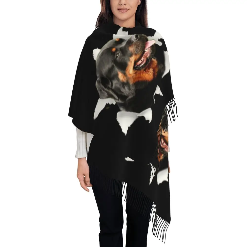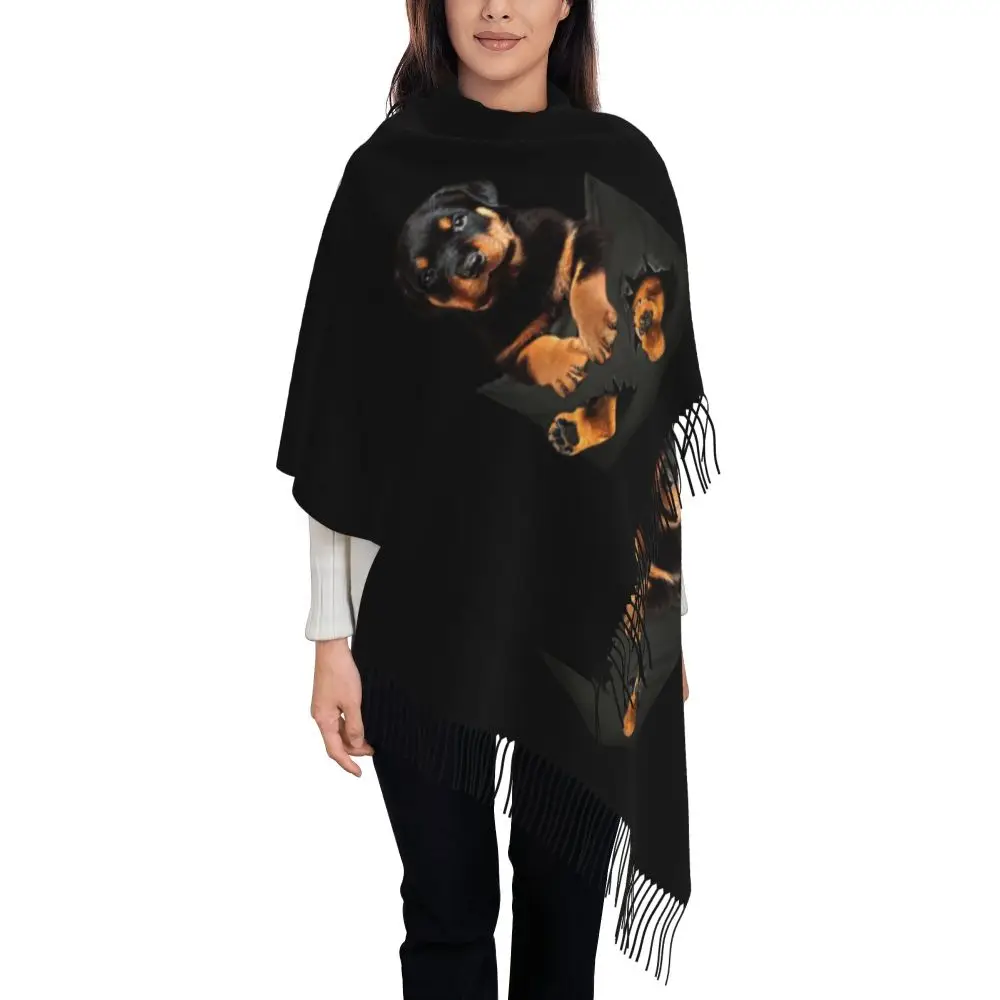 Custom Cute Funny Rottweiler Dog Tassel Scarf Women Soft Animal Shawl Wrap Ladies Winter Fall Scarves