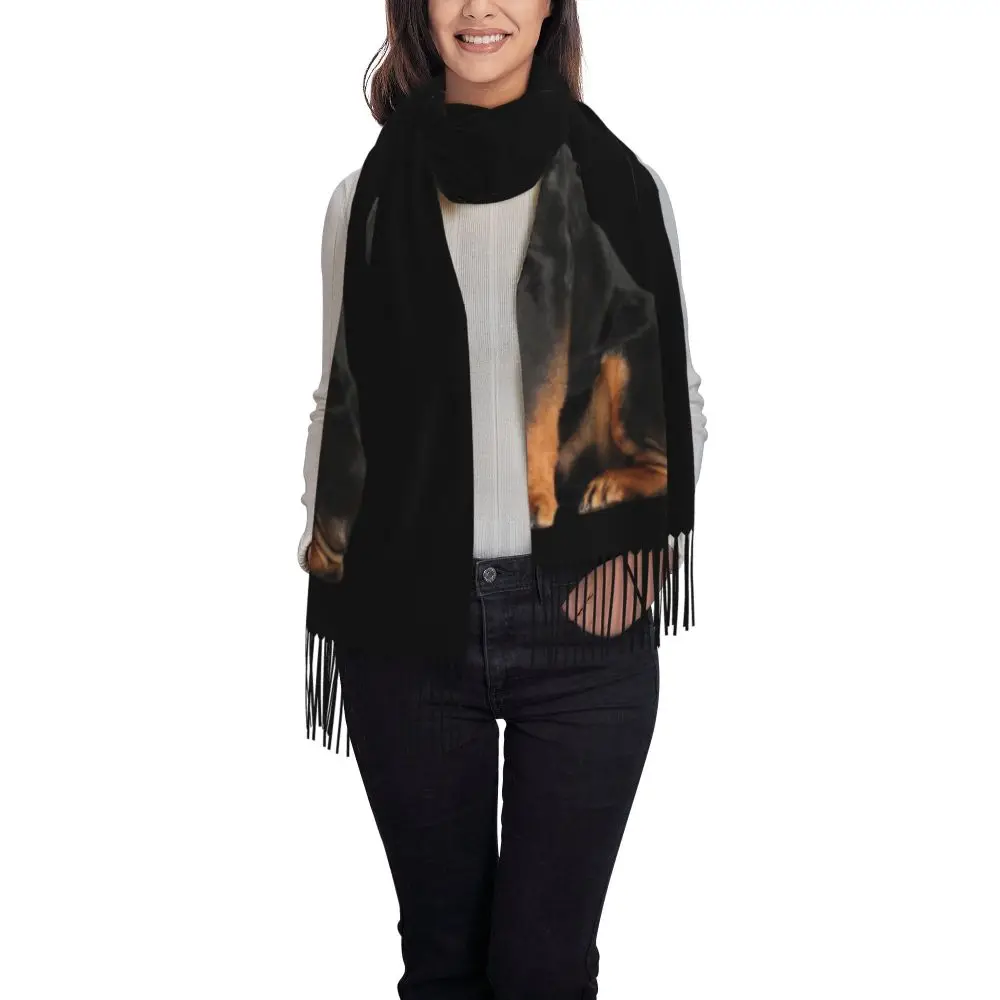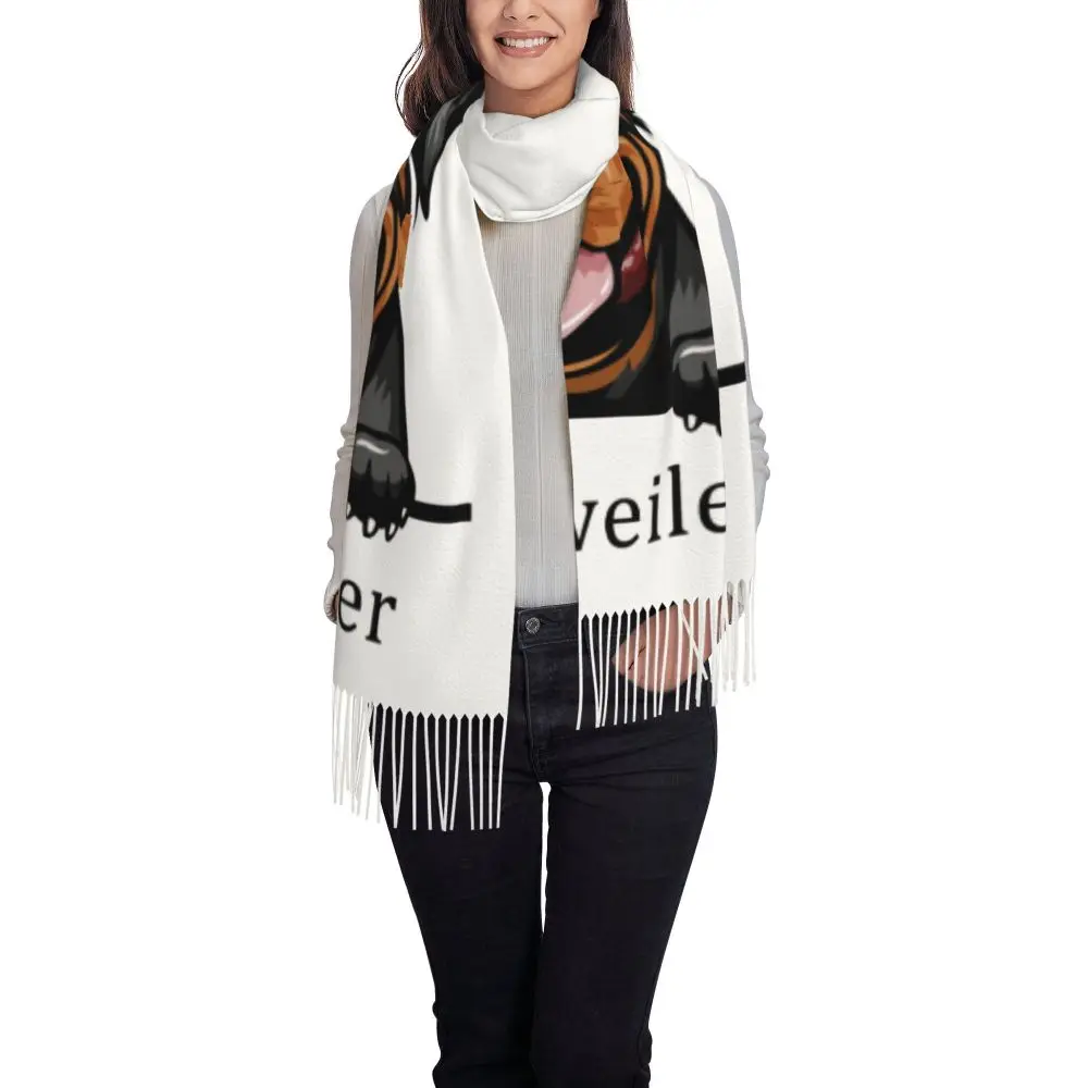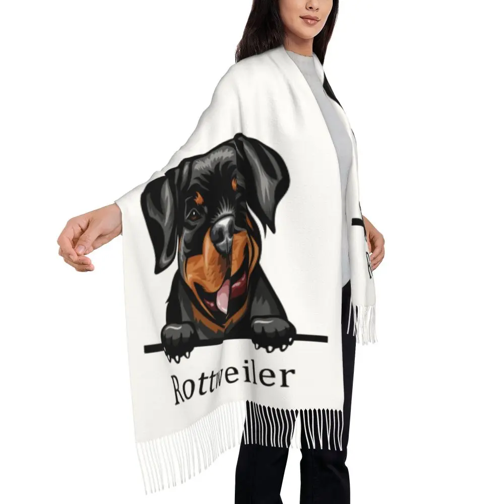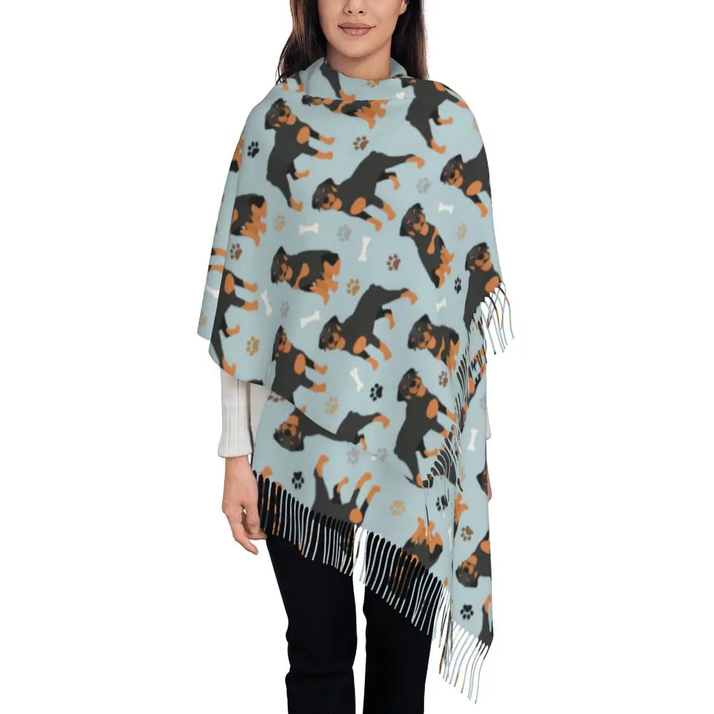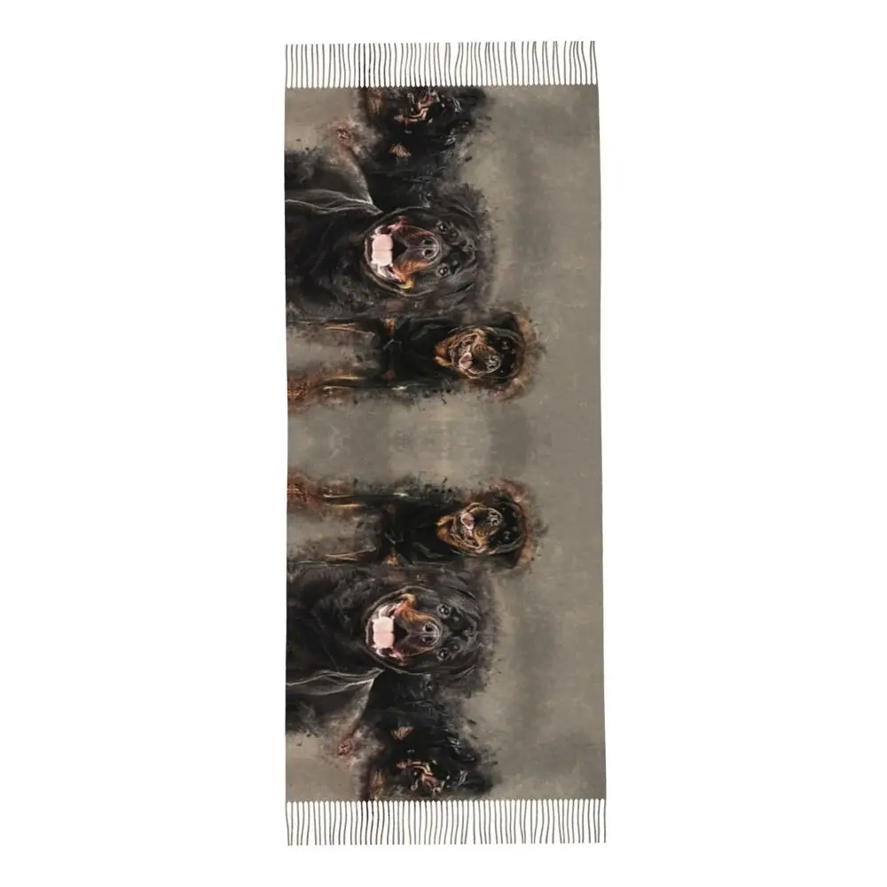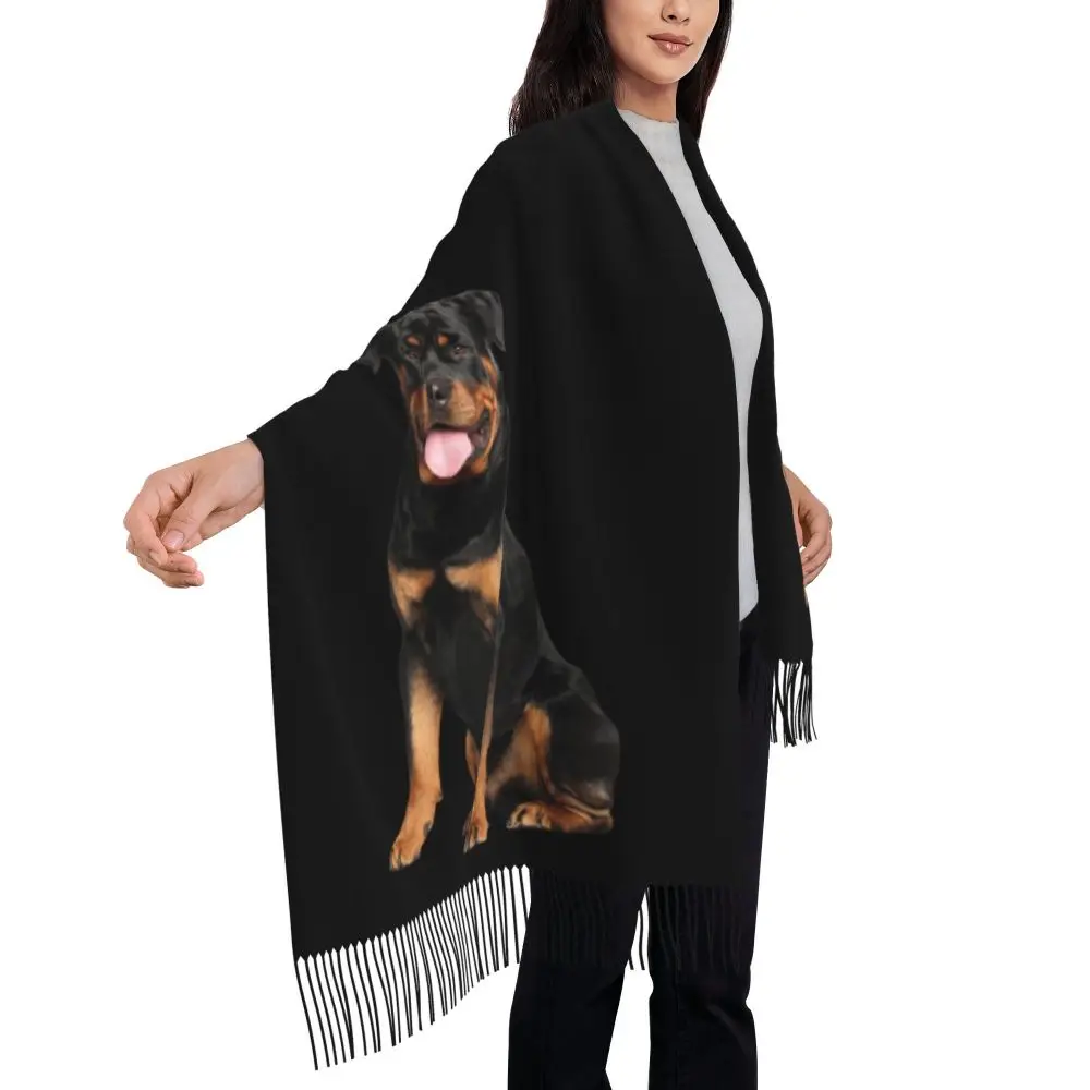 Custom Cute Funny Rottweiler Dog Tassel Scarf Women Soft Animal Shawl Wrap Ladies Winter Fall Scarves