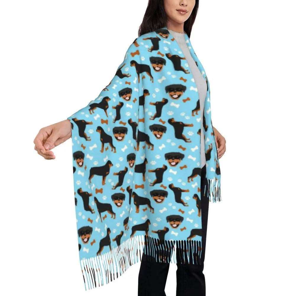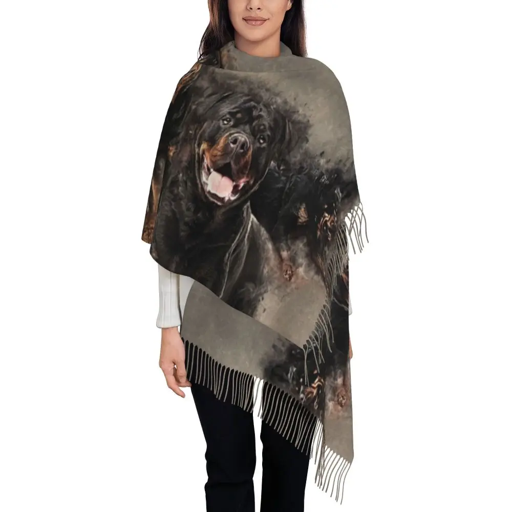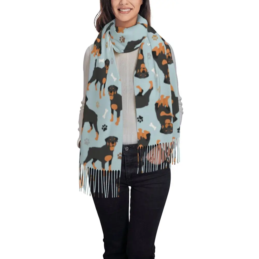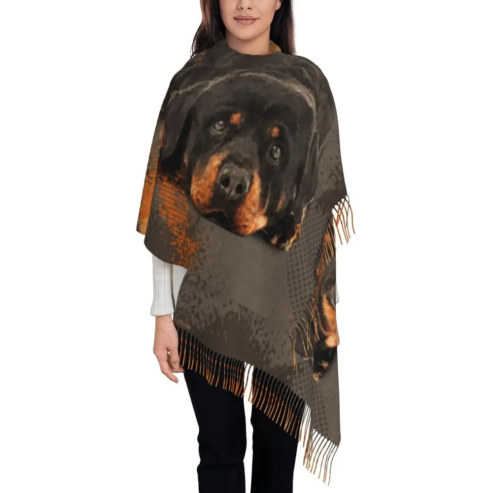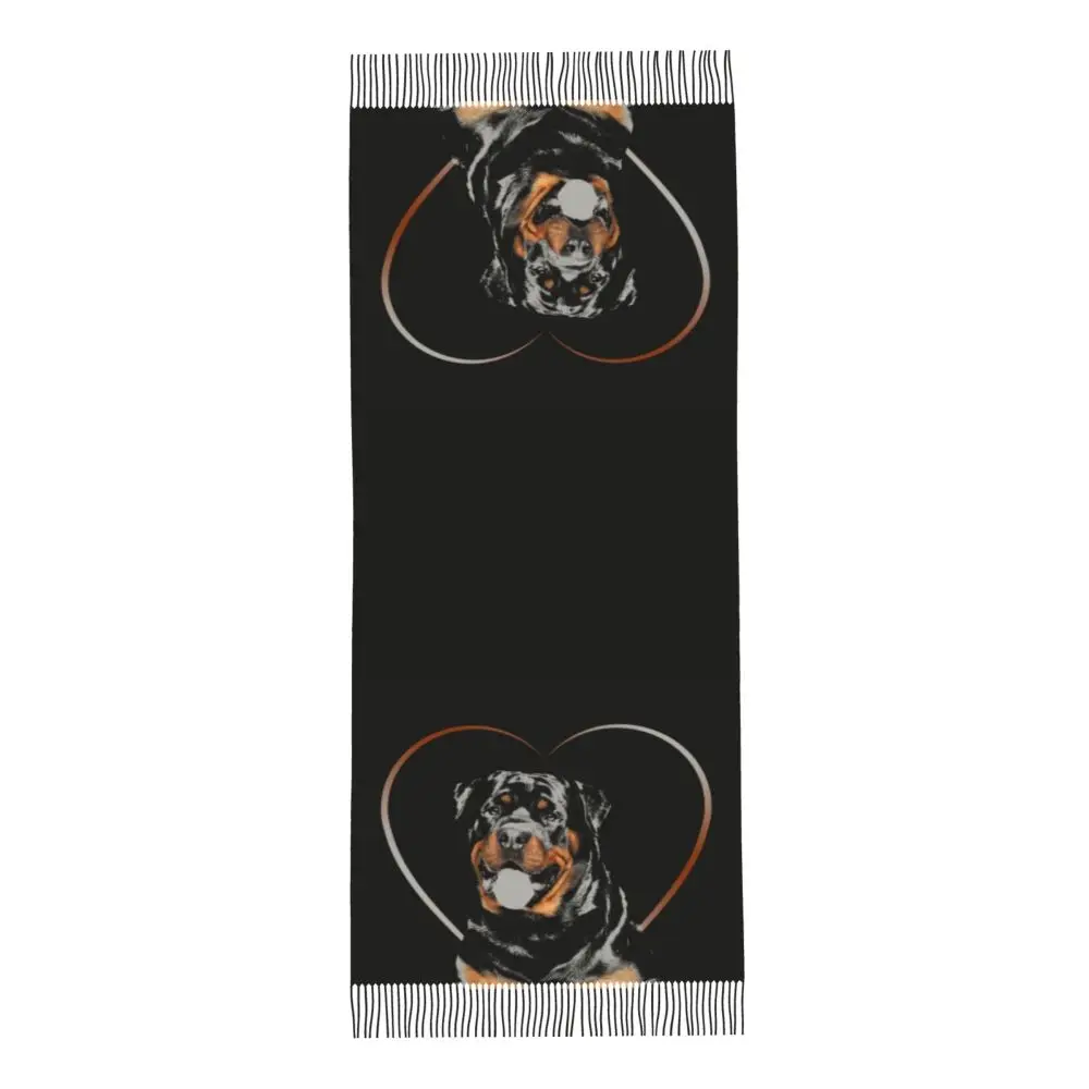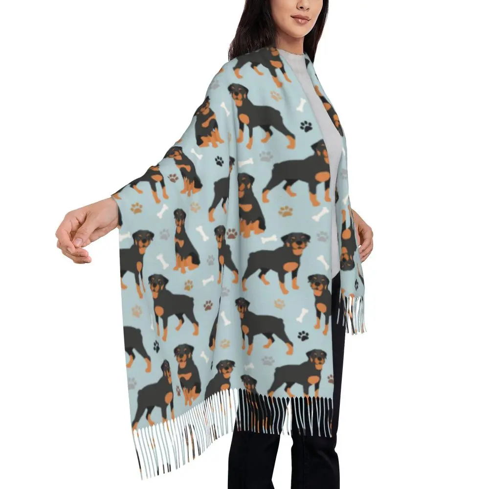 Custom Cute Funny Rottweiler Dog Tassel Scarf Women Soft Animal Shawl Wrap Ladies Winter Fall Scarves