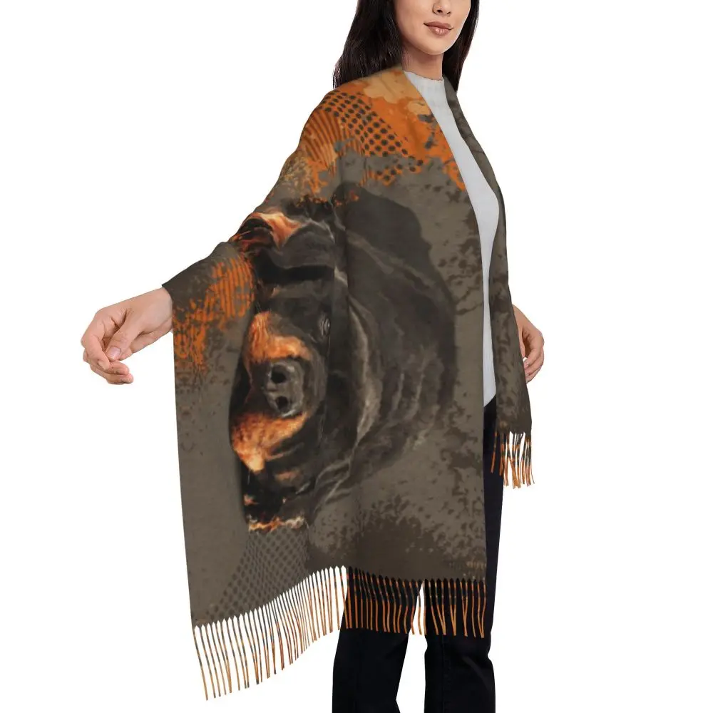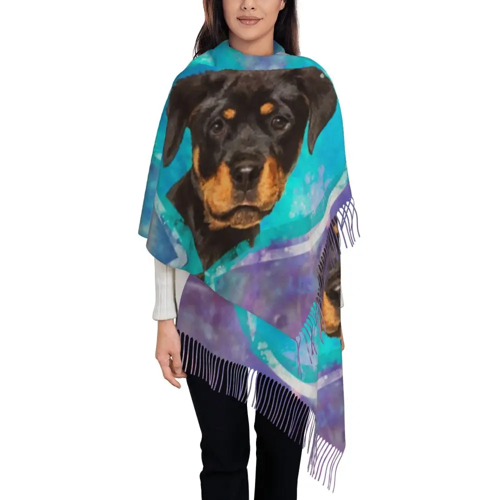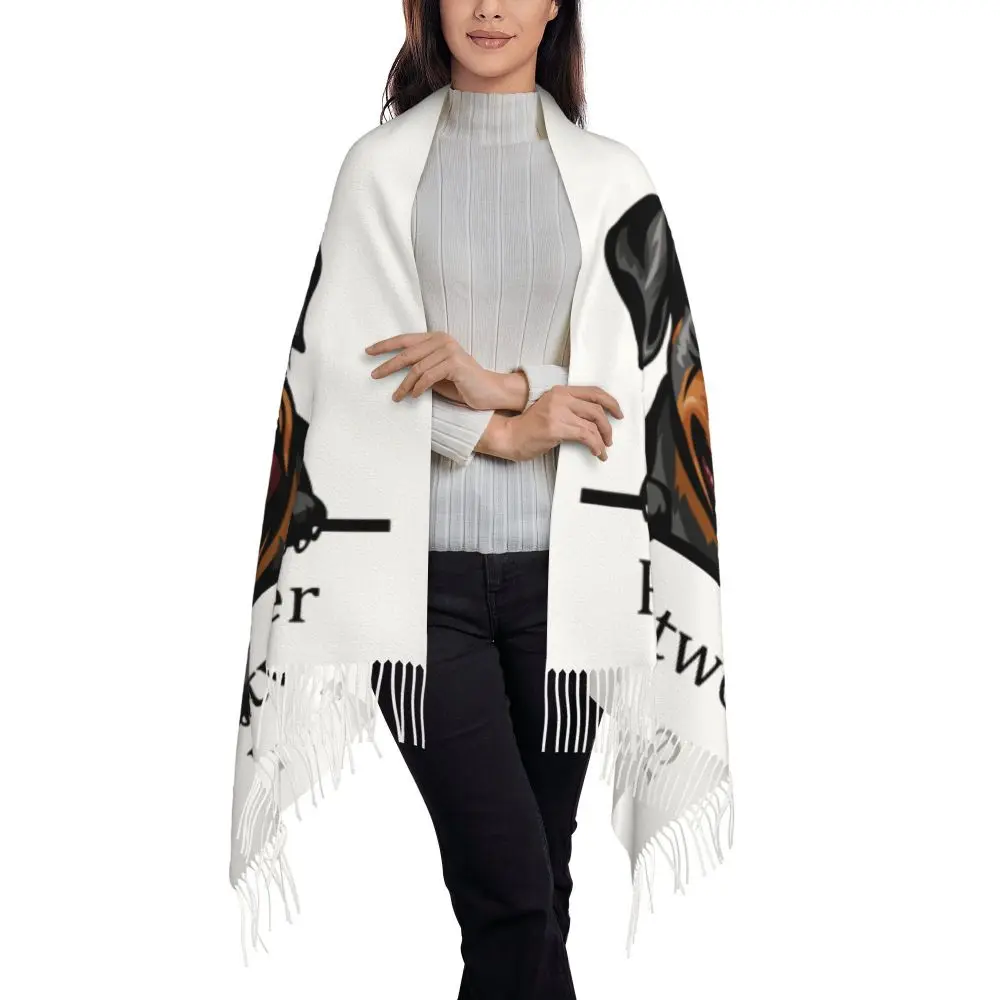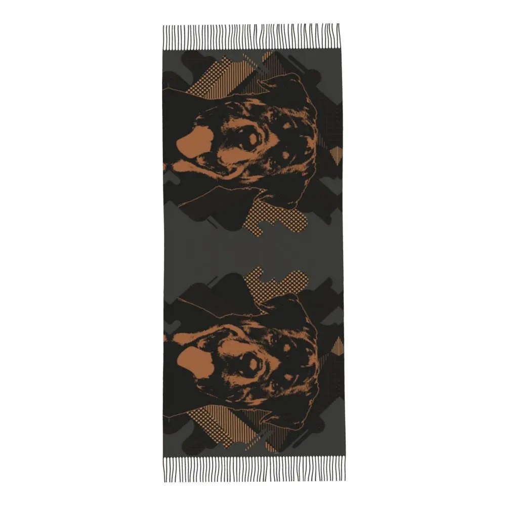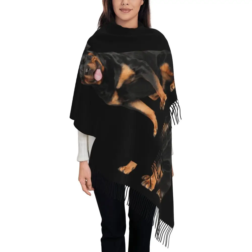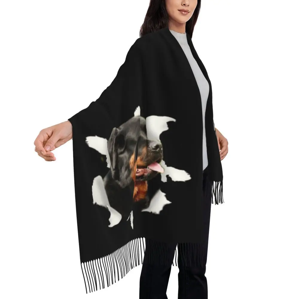 Custom Cute Funny Rottweiler Dog Tassel Scarf Women Soft Animal Shawl Wrap Ladies Winter Fall Scarves
