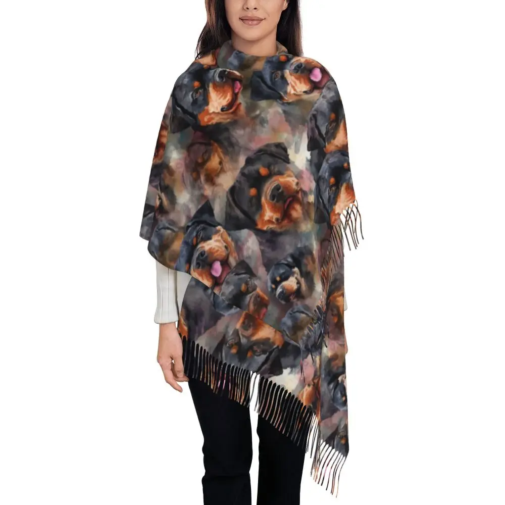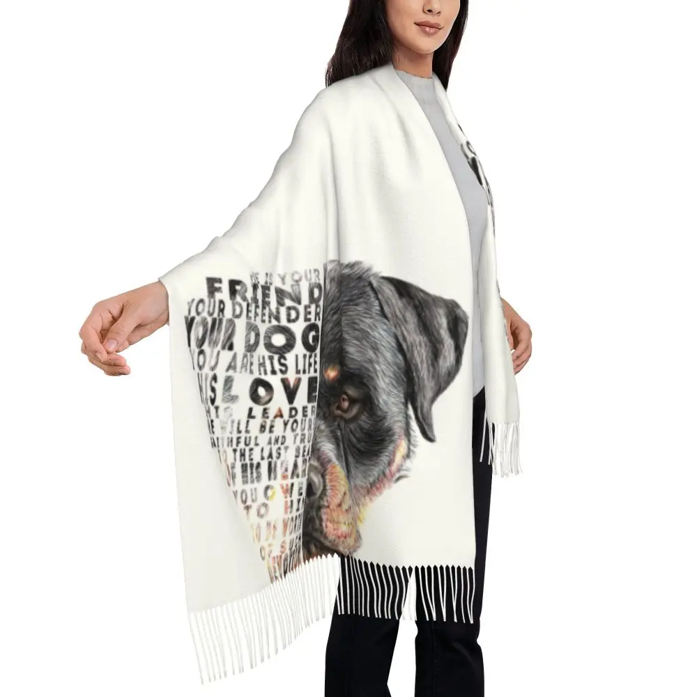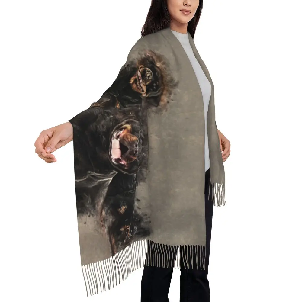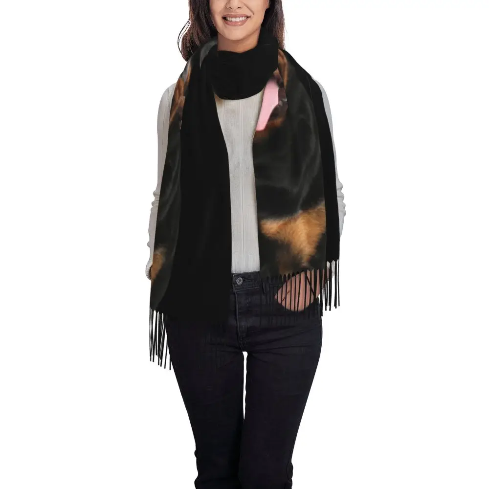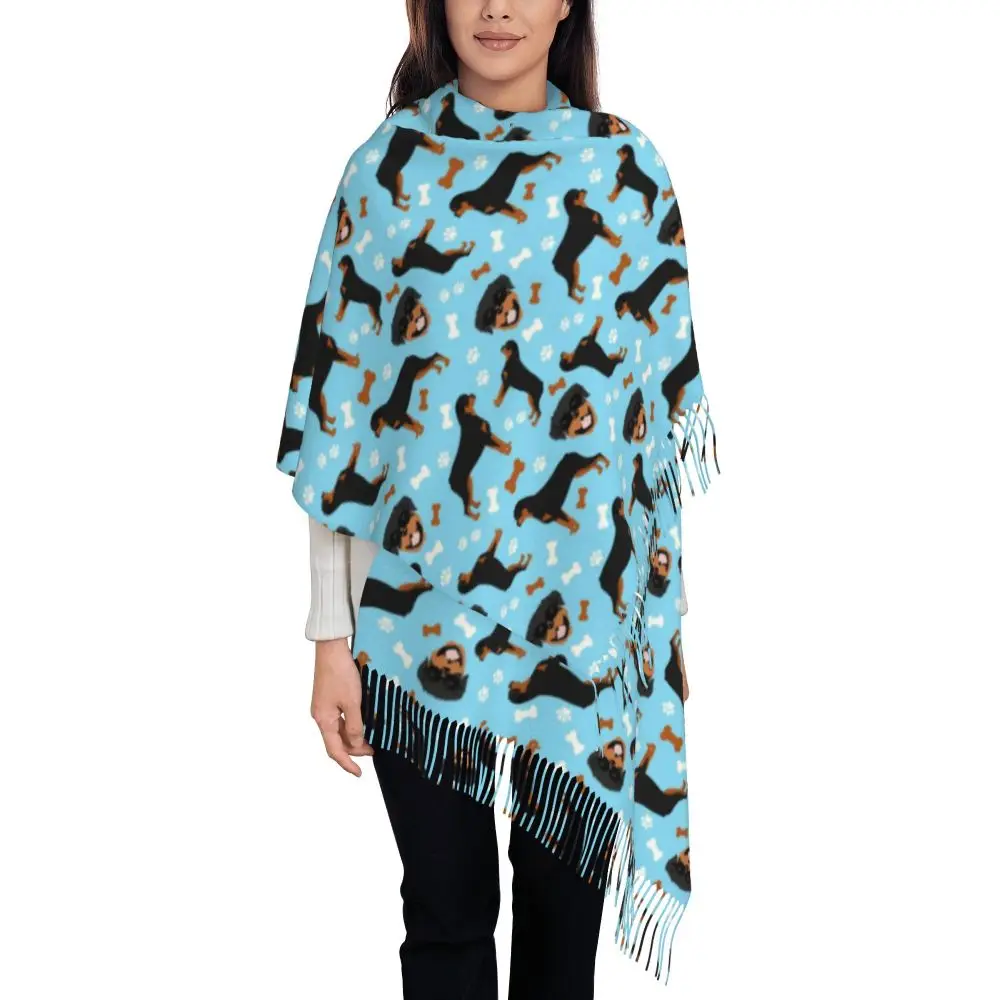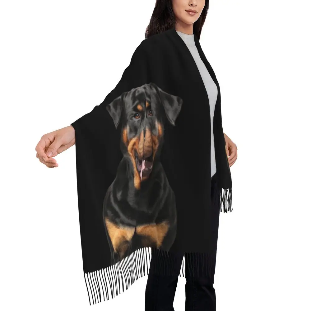 Custom Cute Funny Rottweiler Dog Tassel Scarf Women Soft Animal Shawl Wrap Ladies Winter Fall Scarves