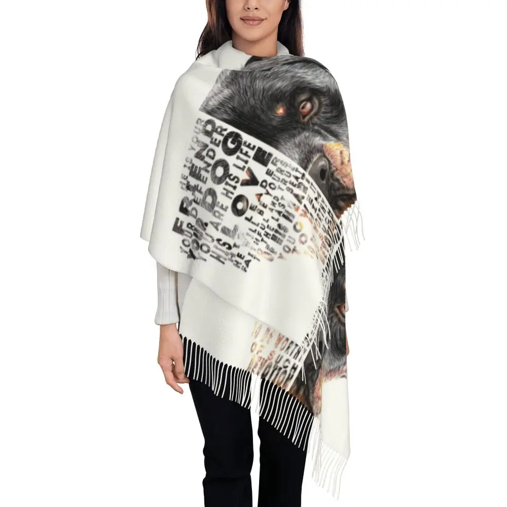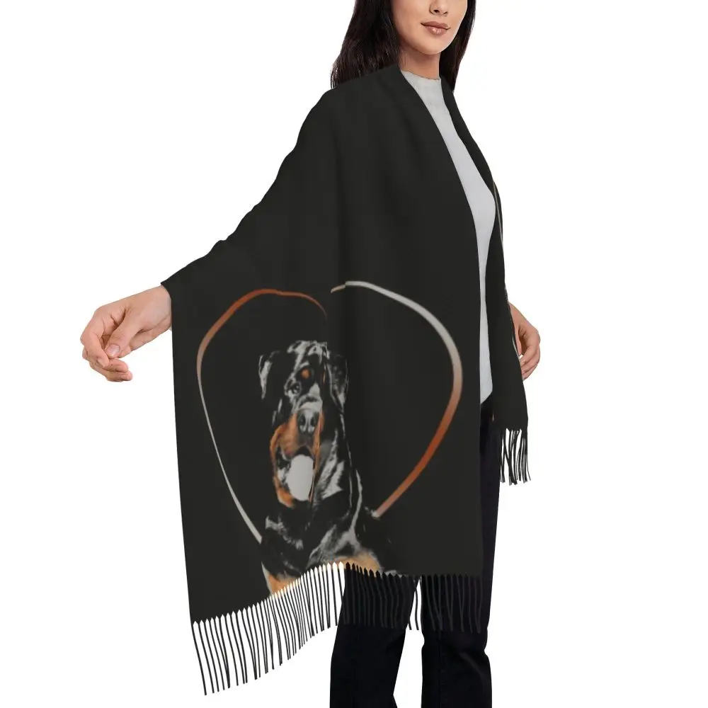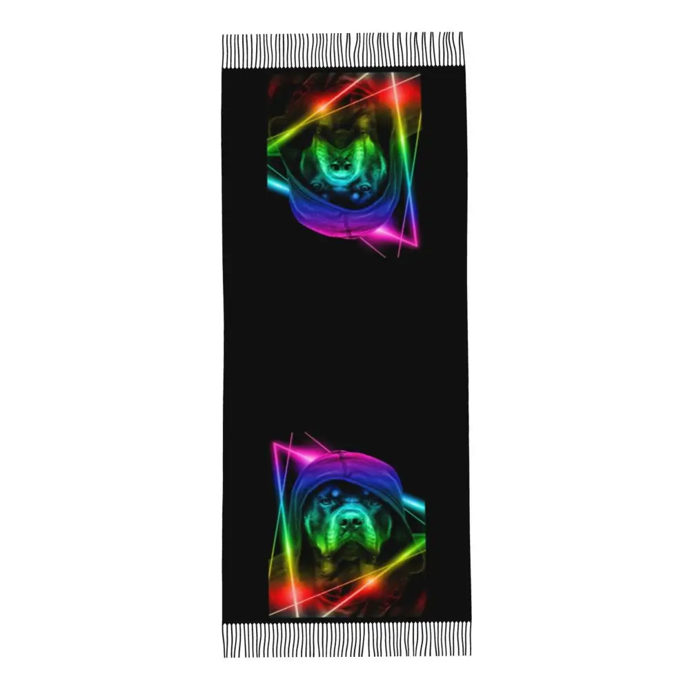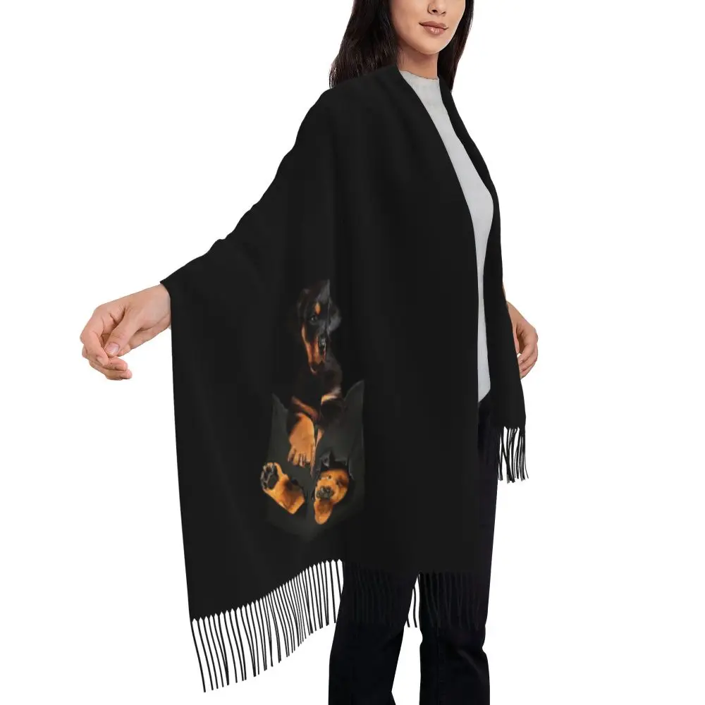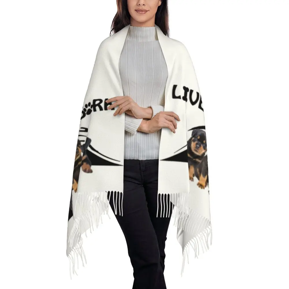 Custom Cute Funny Rottweiler Dog Tassel Scarf Women Soft Animal Shawl Wrap Ladies Winter Fall Scarves