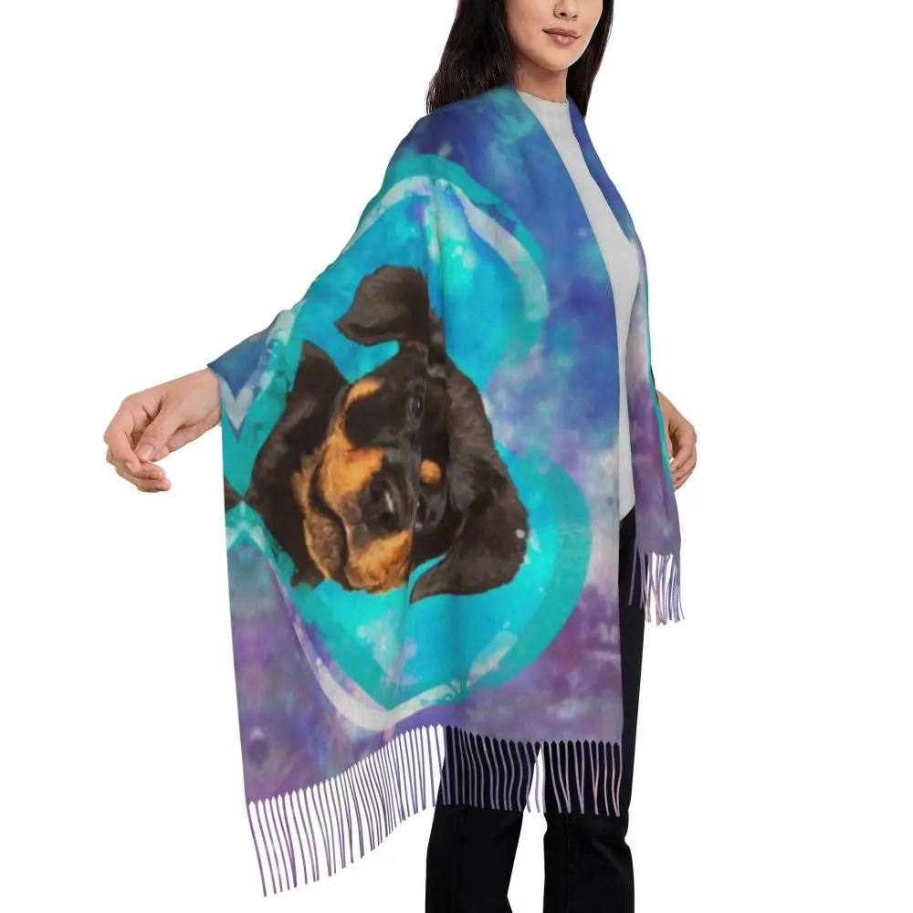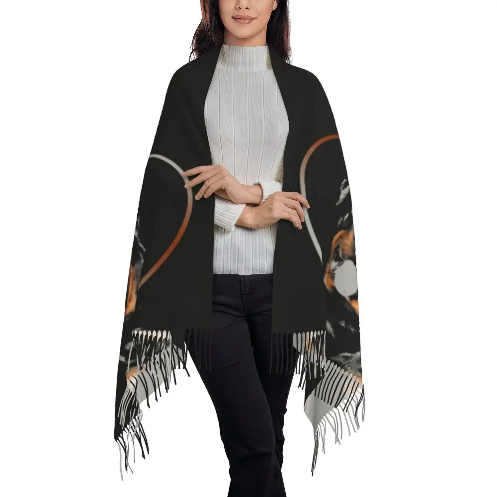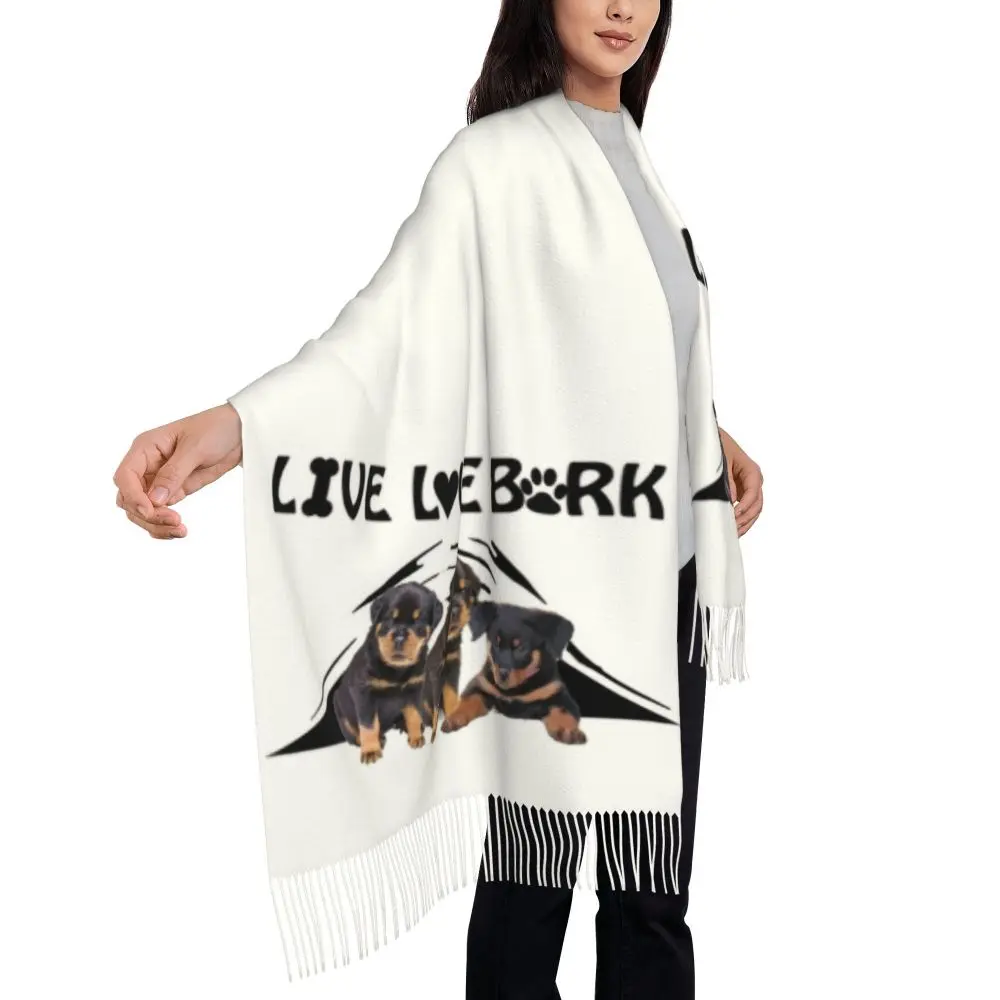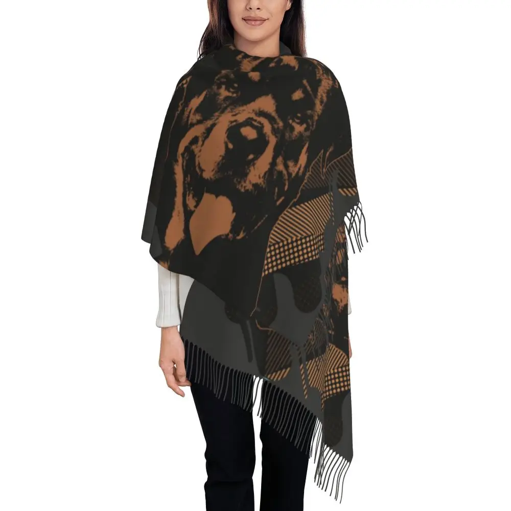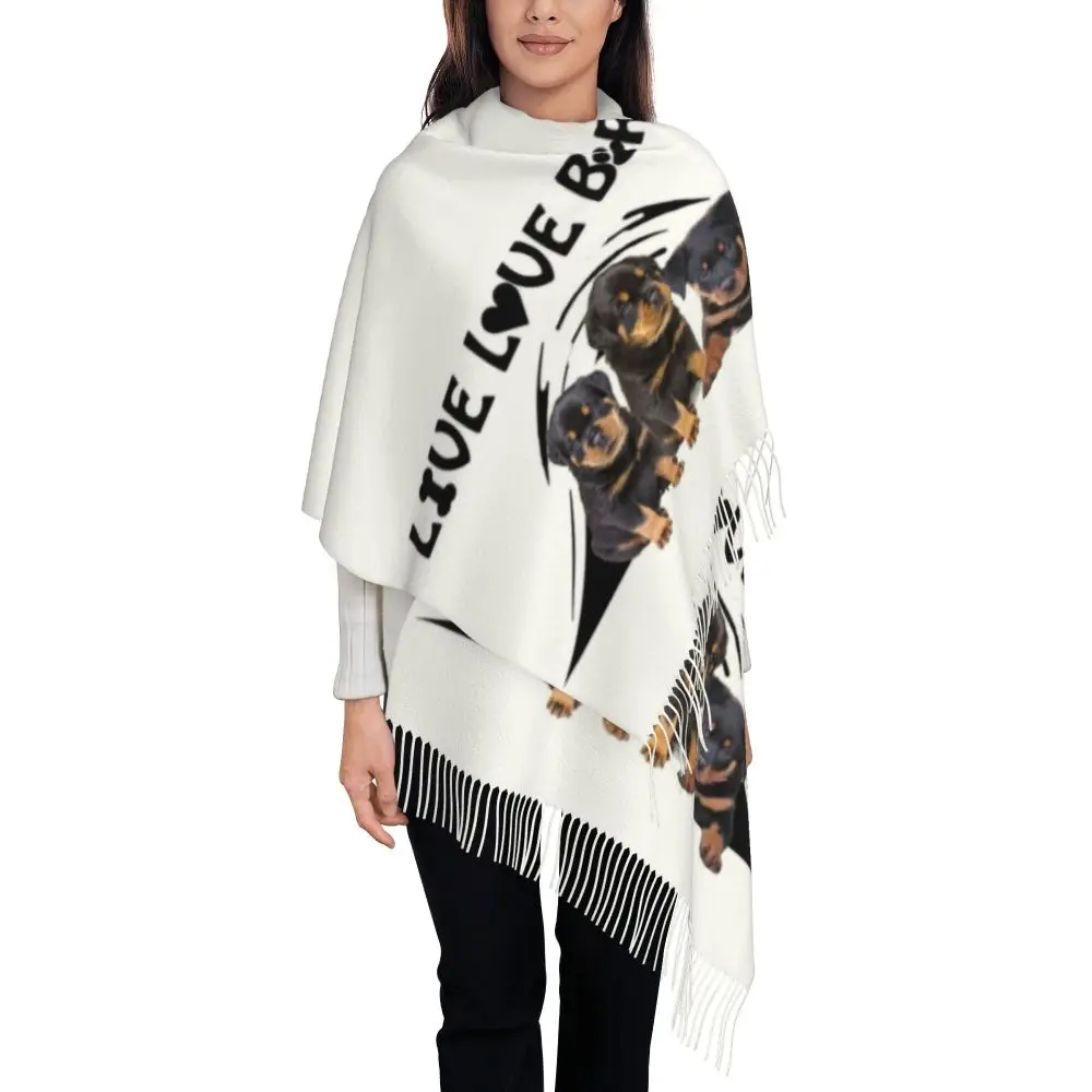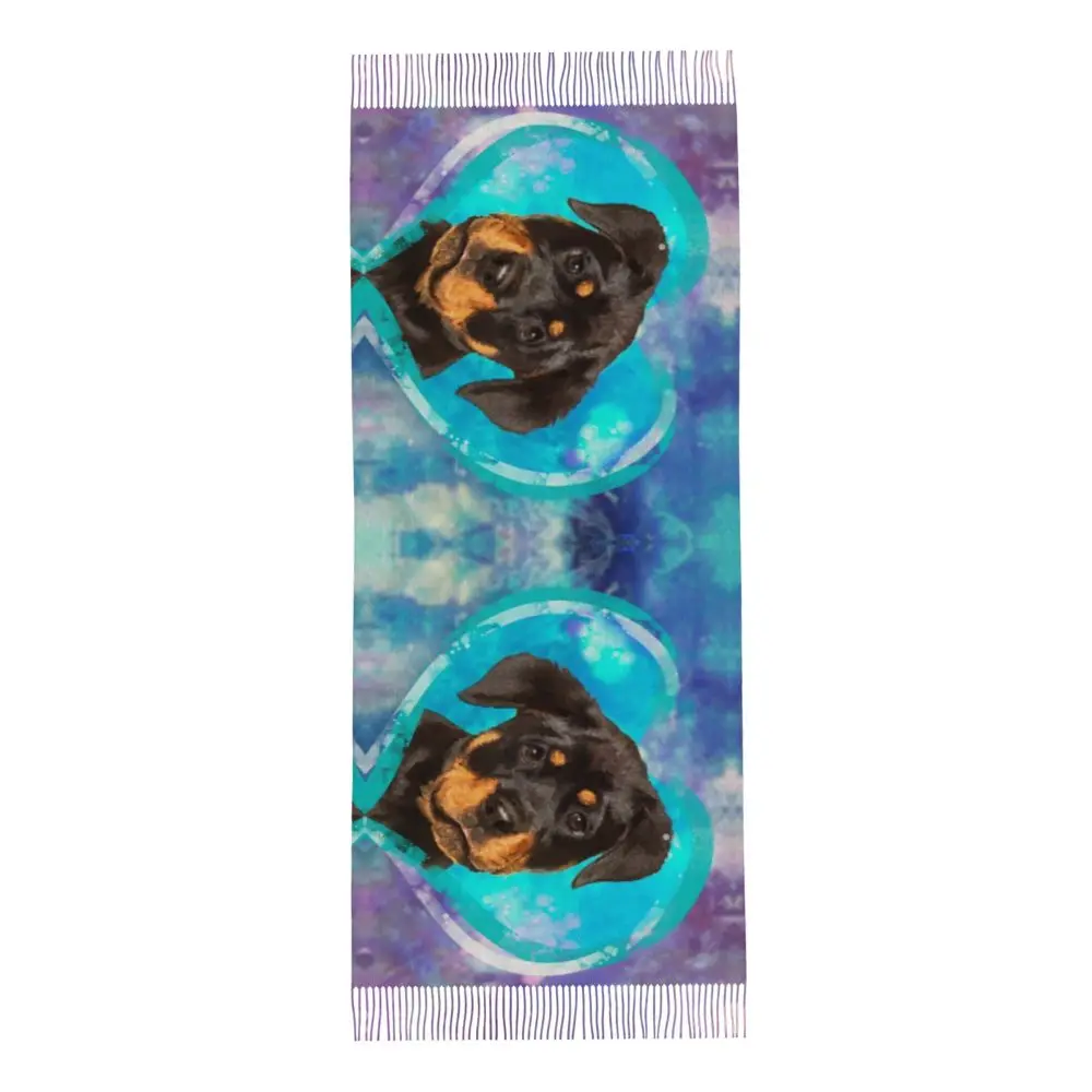Custom Cute Funny Rottweiler Dog Tassel Scarf Women Soft Animal Shawl Wrap Ladies Winter Fall Scarves