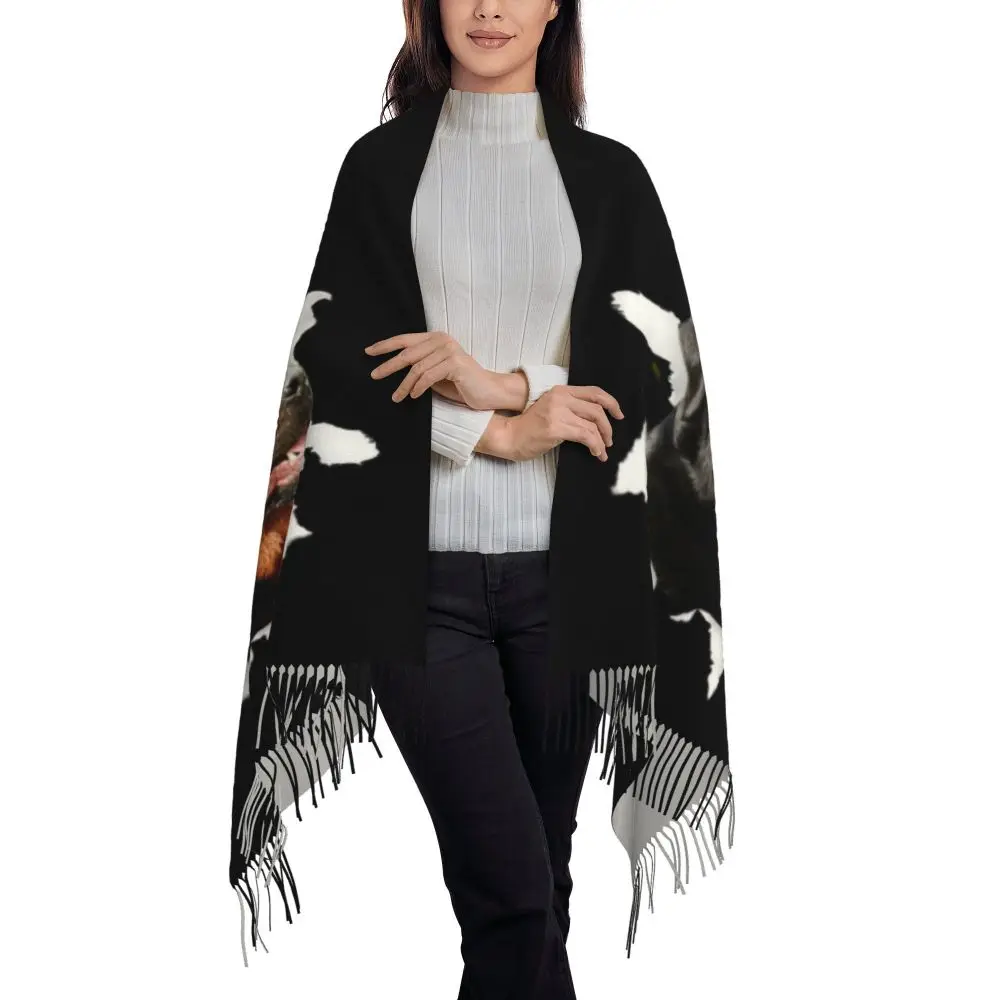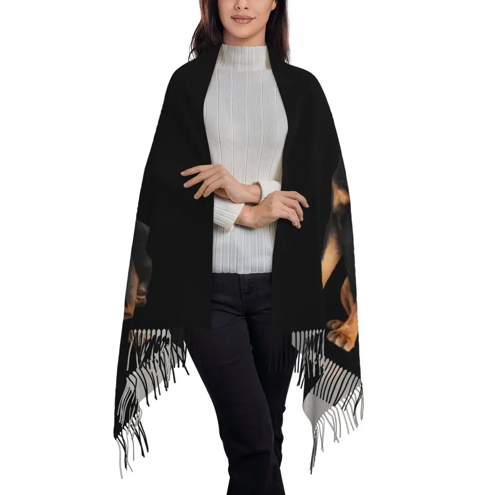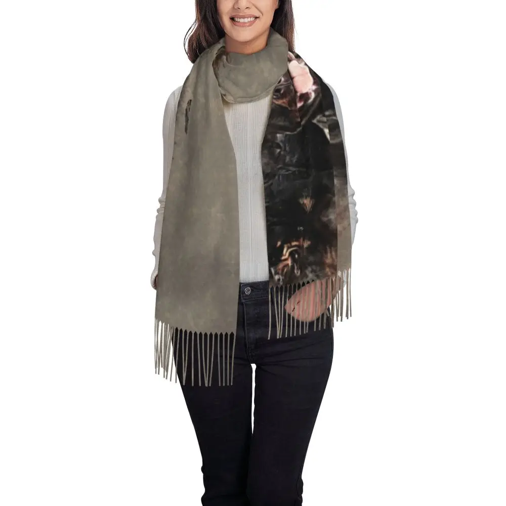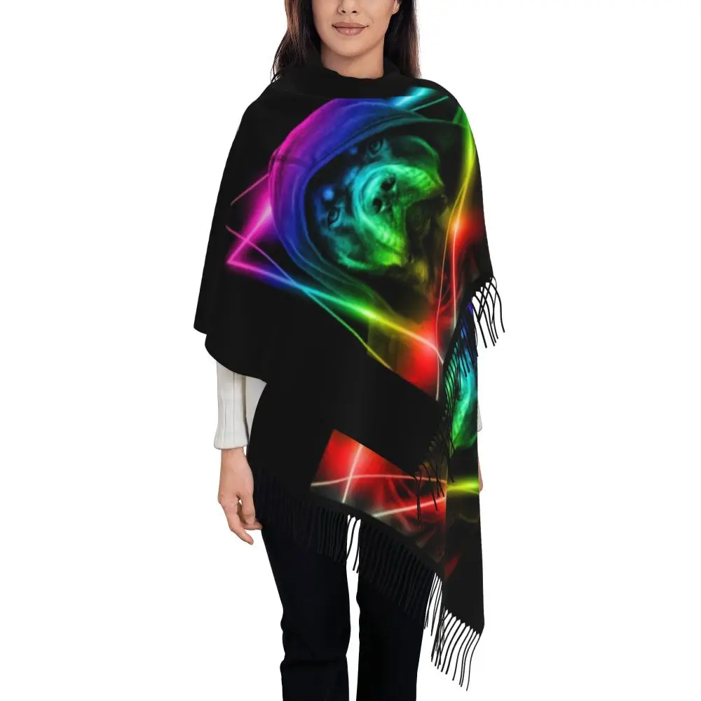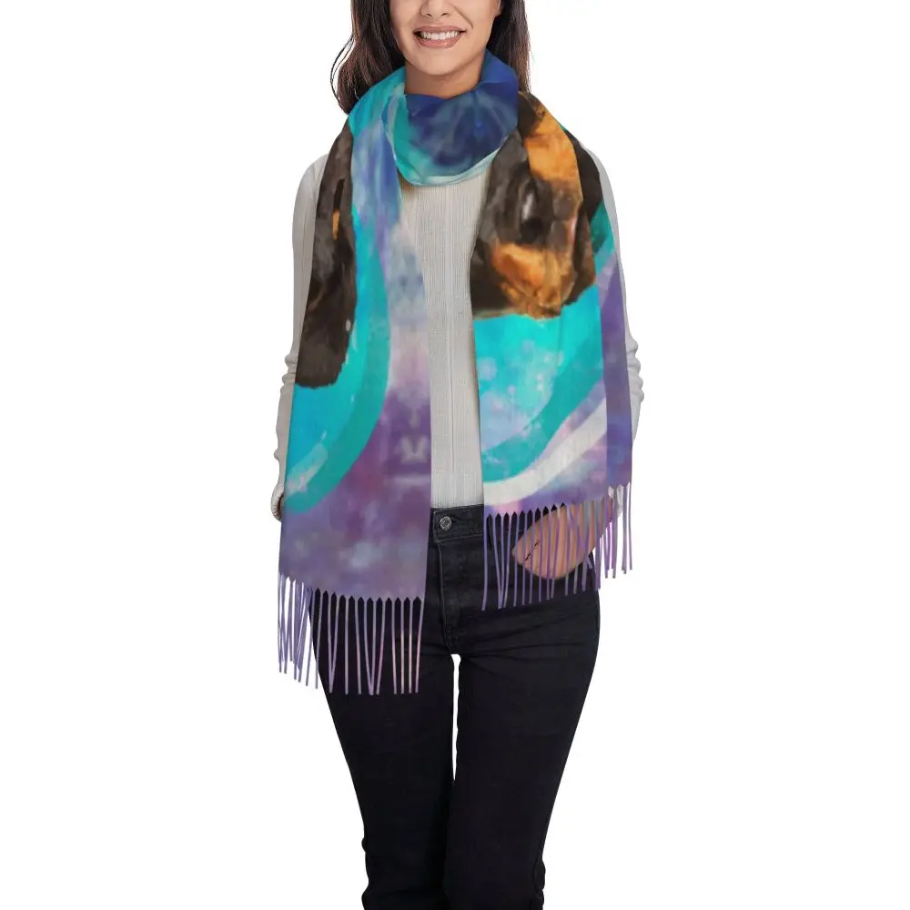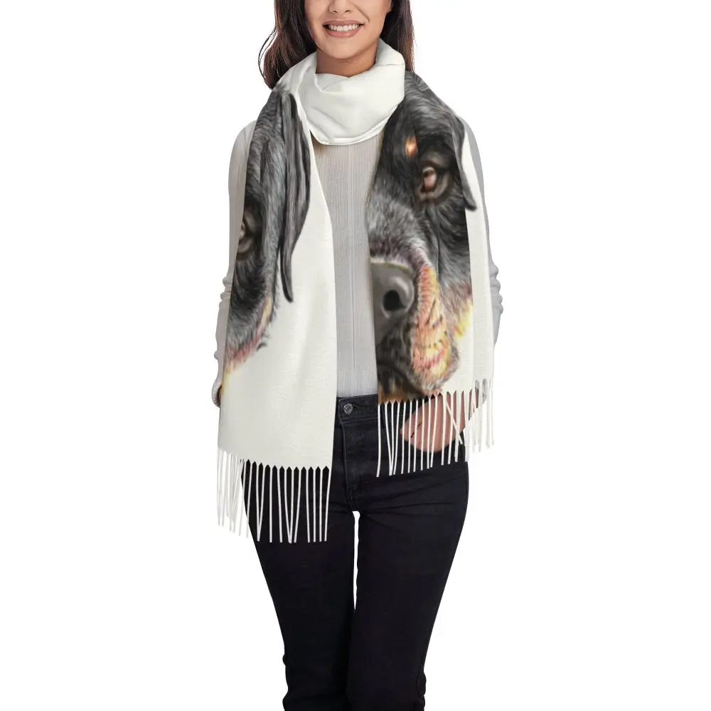 Custom Cute Funny Rottweiler Dog Tassel Scarf Women Soft Animal Shawl Wrap Ladies Winter Fall Scarves