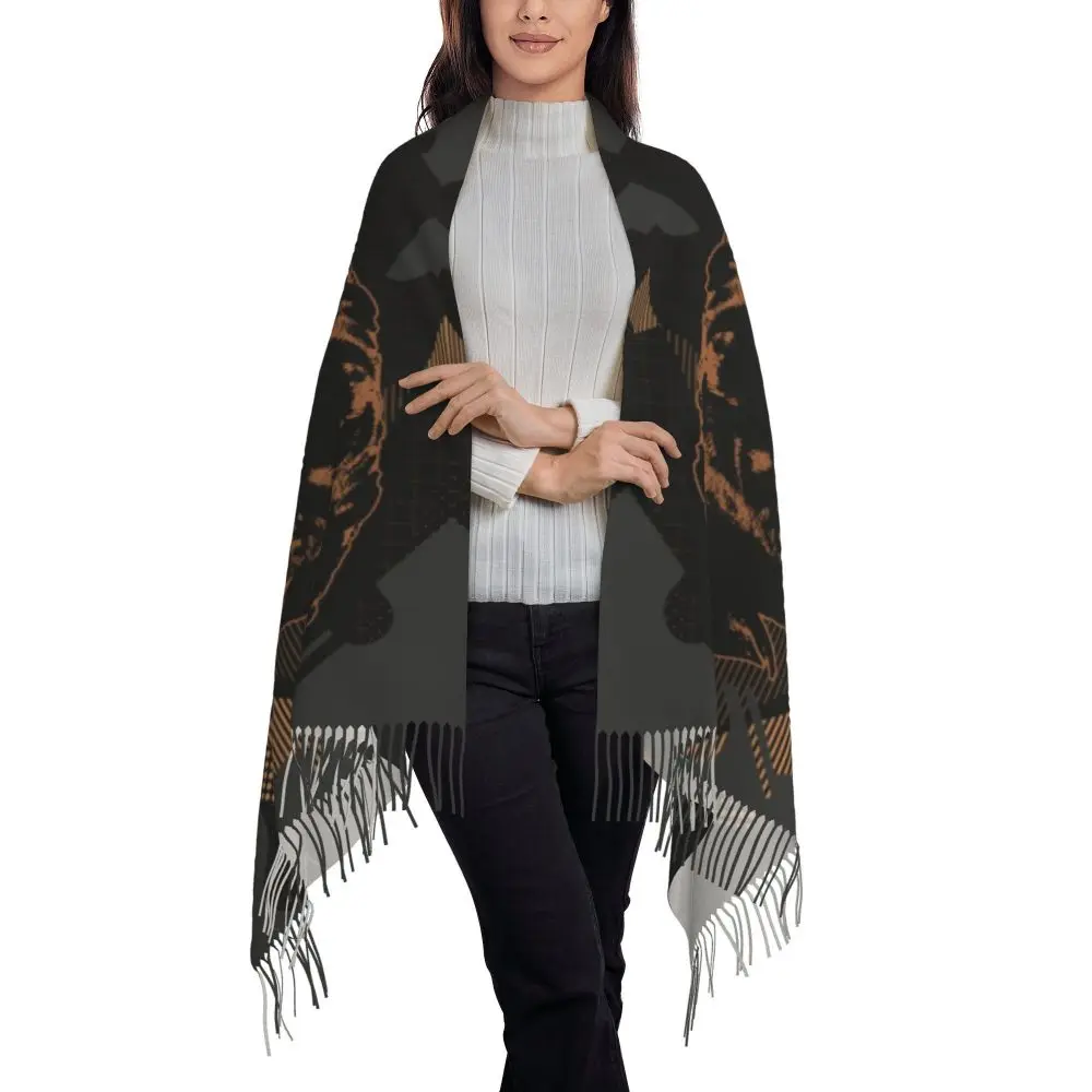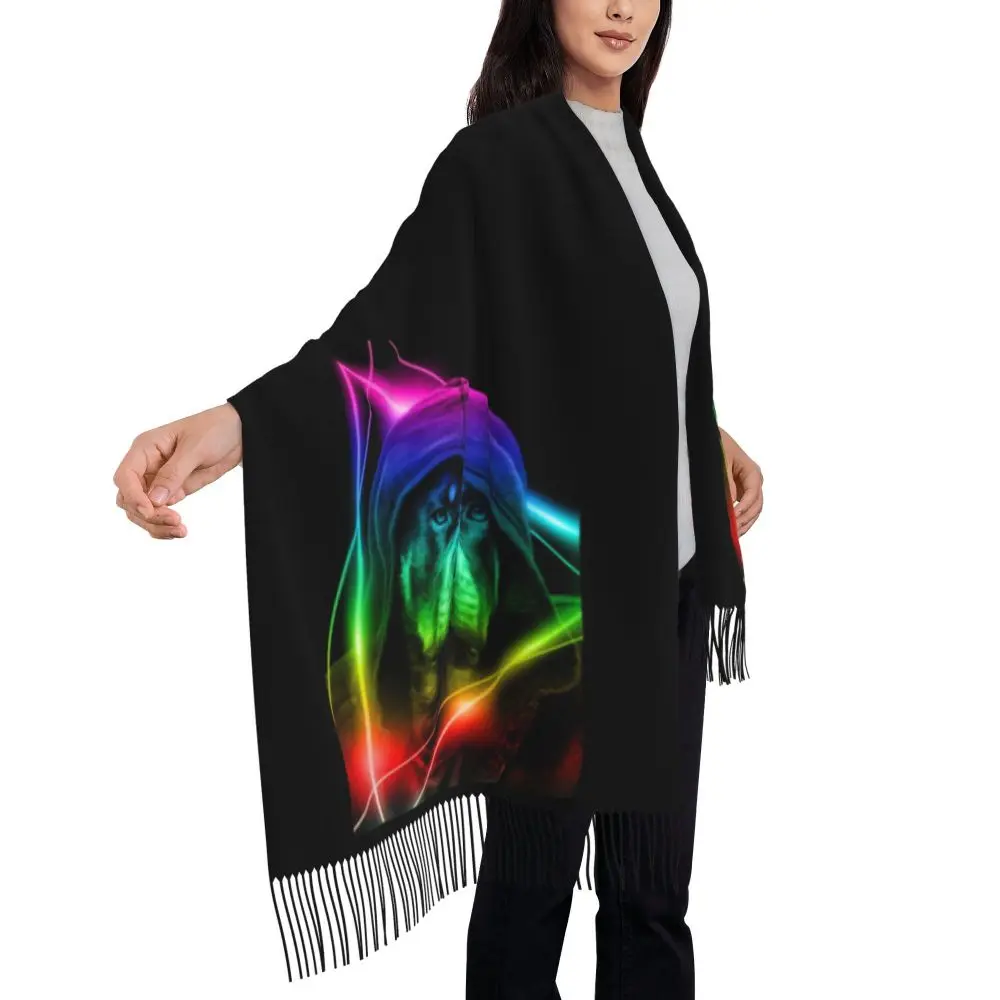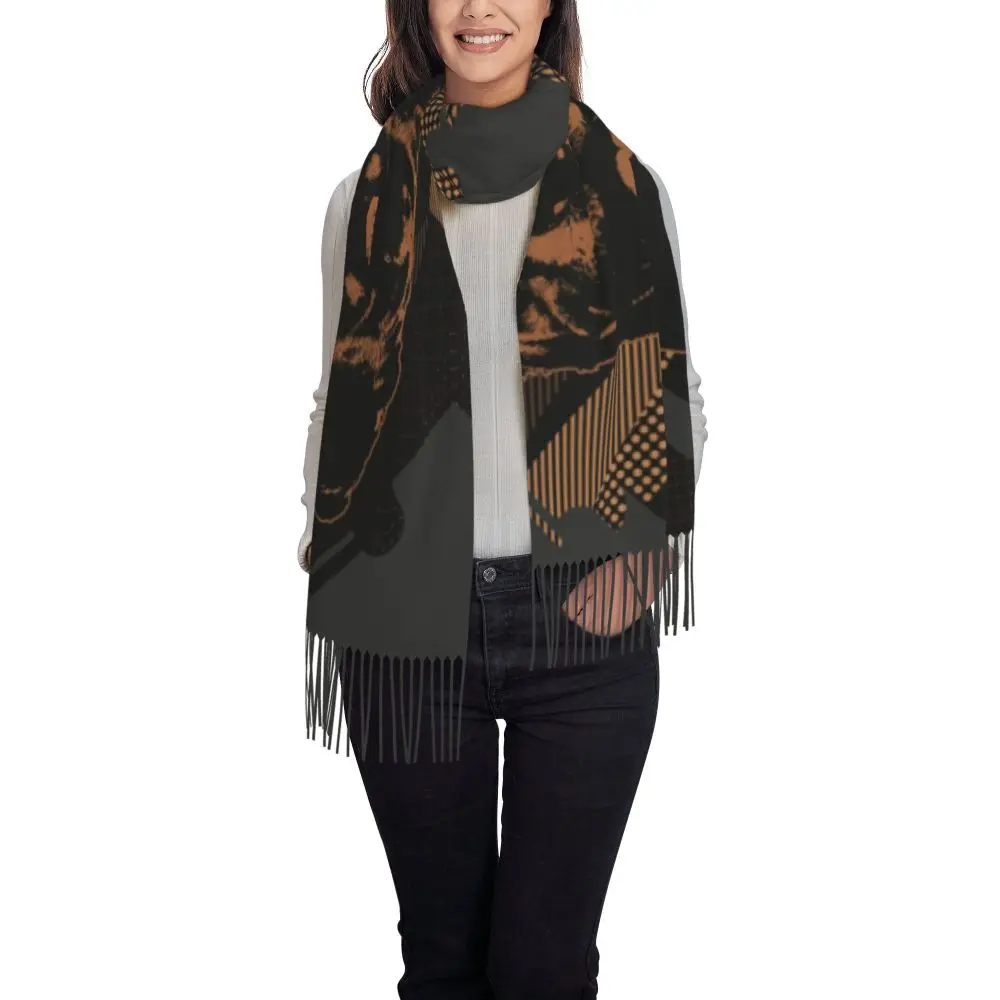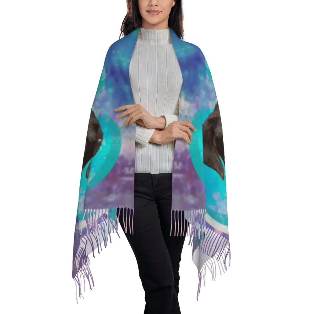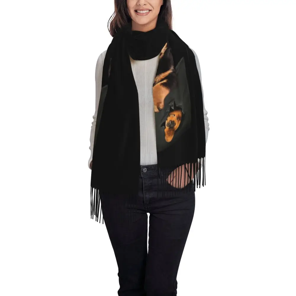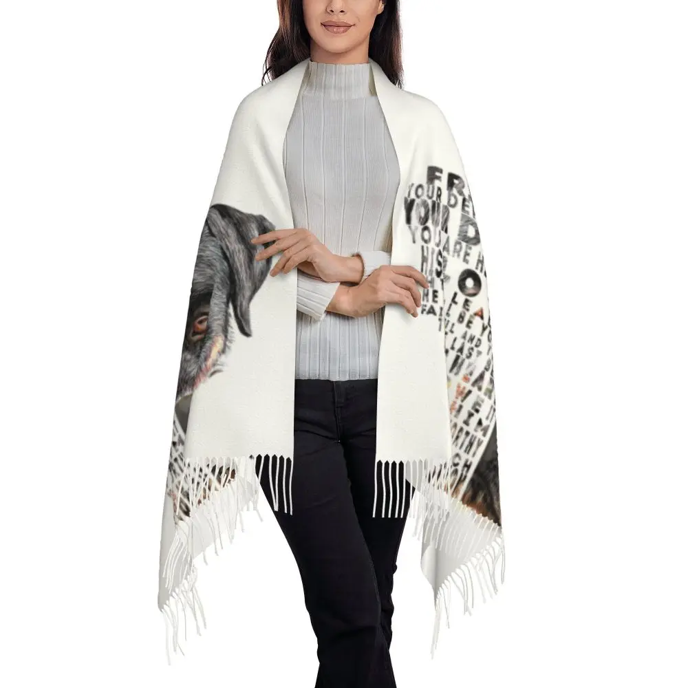 Custom Cute Funny Rottweiler Dog Tassel Scarf Women Soft Animal Shawl Wrap Ladies Winter Fall Scarves
