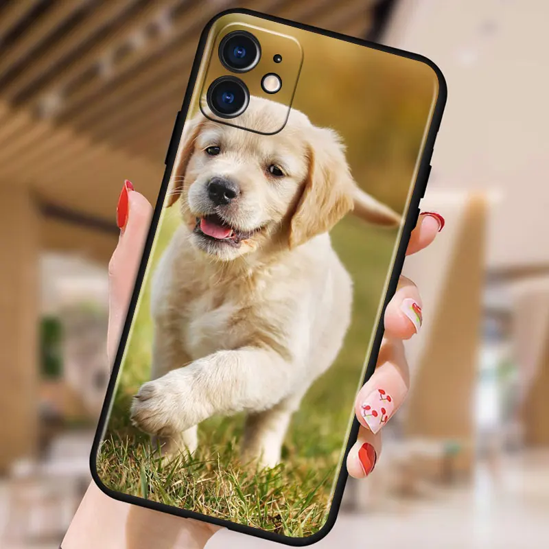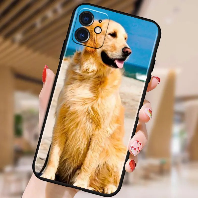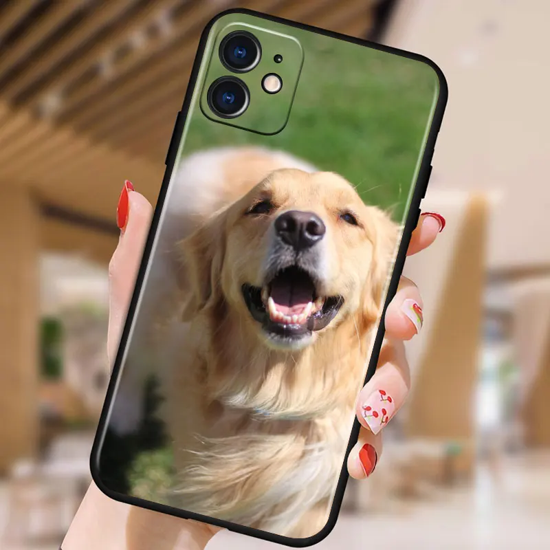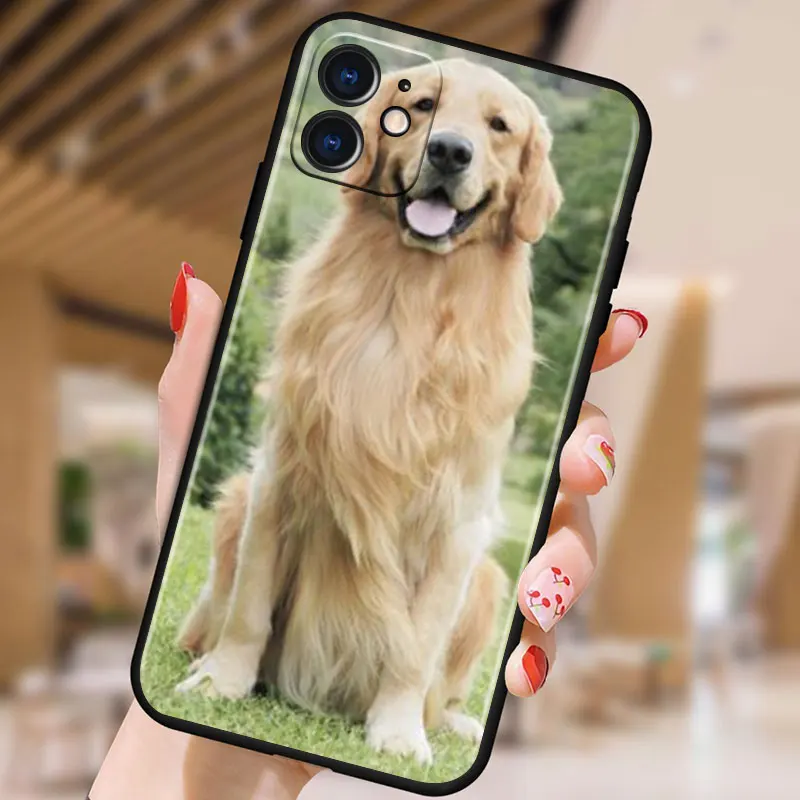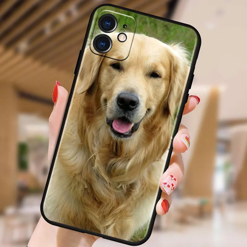 Golden Retriever Dog Cute for Apple iPhone 13 12 11 Pro Max mini XS XR X 7 8 6S 5S SE 2020 Soft Black Phone Case Cover
