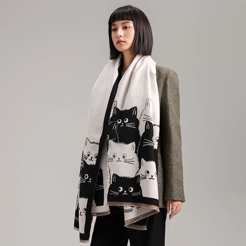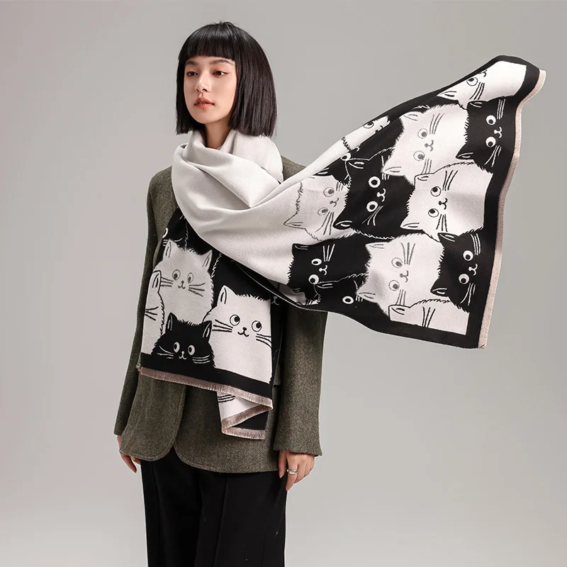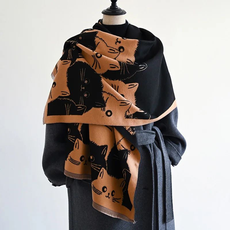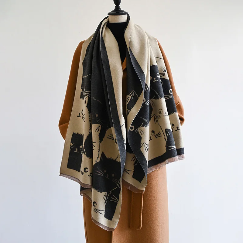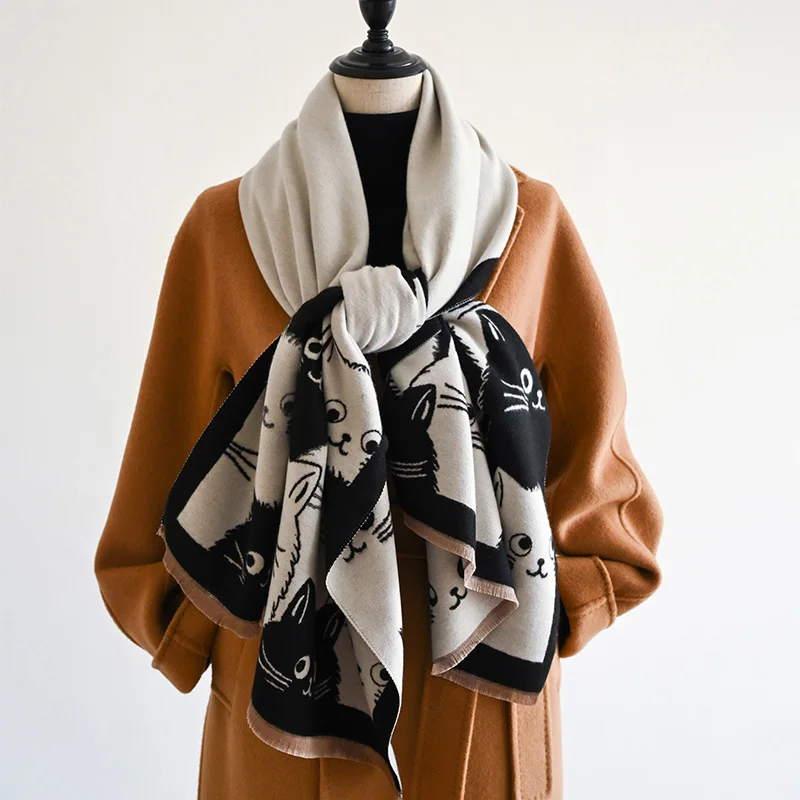 New Fashion Brand Cute Cat Ladies' Jacquard Pashmina Cashmere Scarf Winter Thick Warmth Shawl Coldproof Windproof Blanket Scarf
