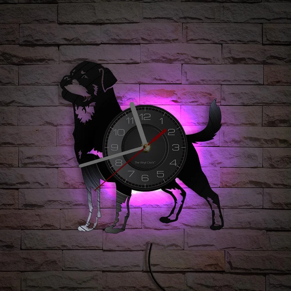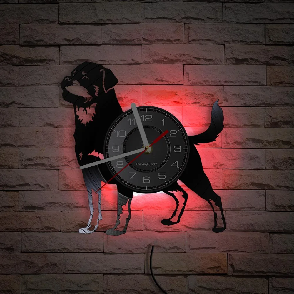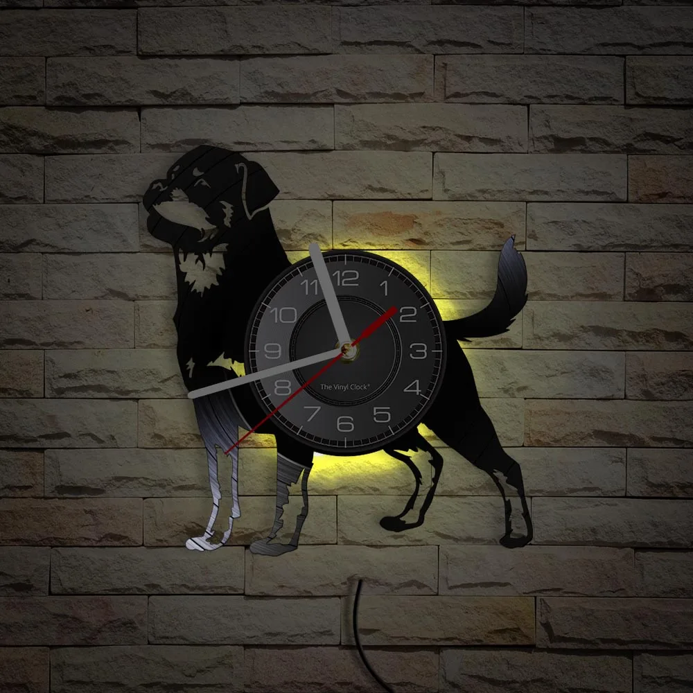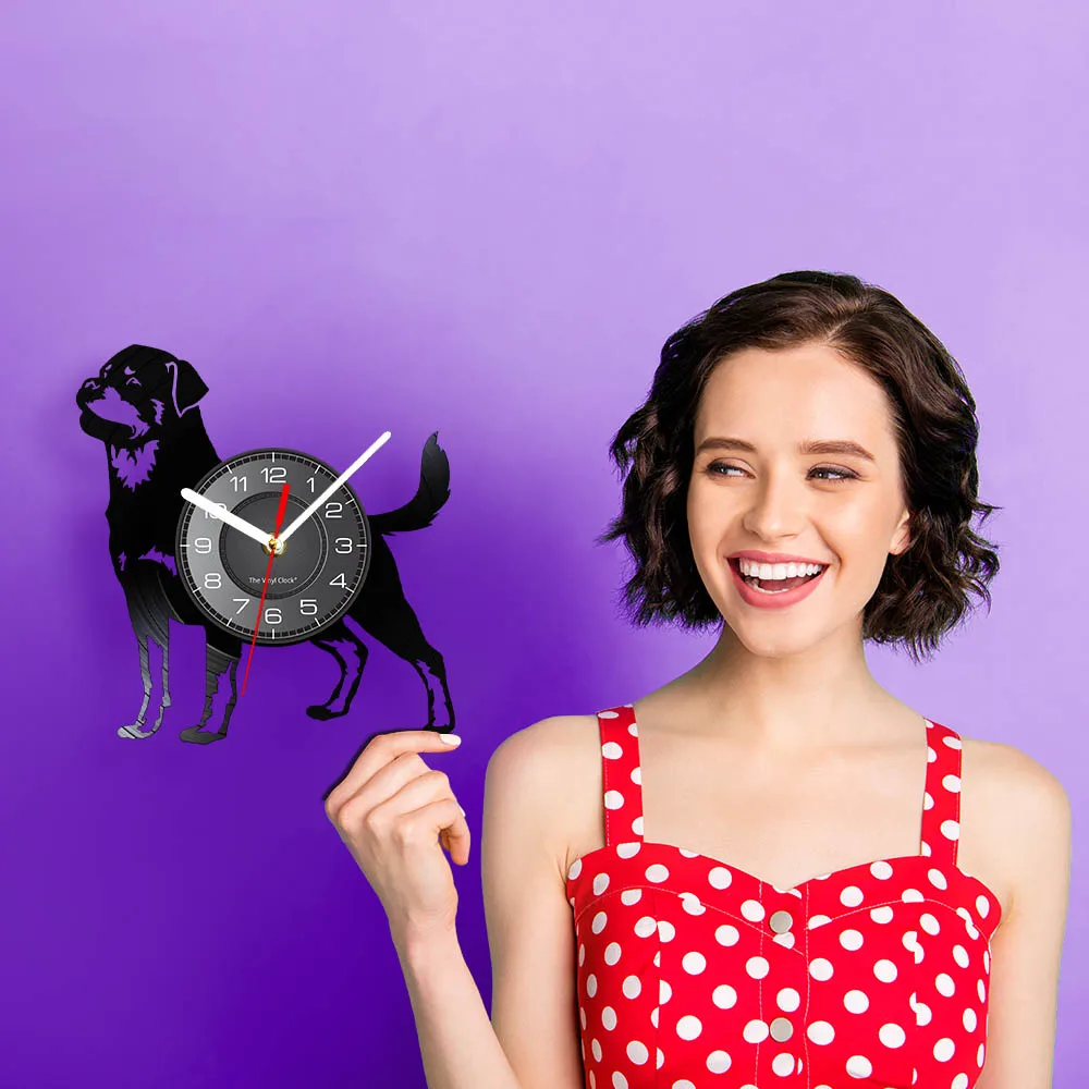 Rottweiler German Breed Vinyl Record Art Decorative Wall Clock Rottweil Butchers Rottie Disk Crafts Silent Dog Lover Gifts