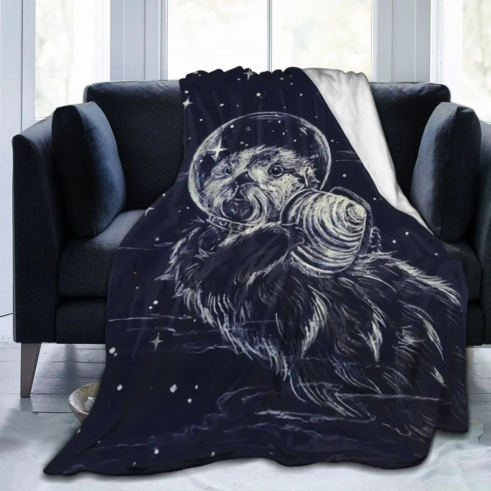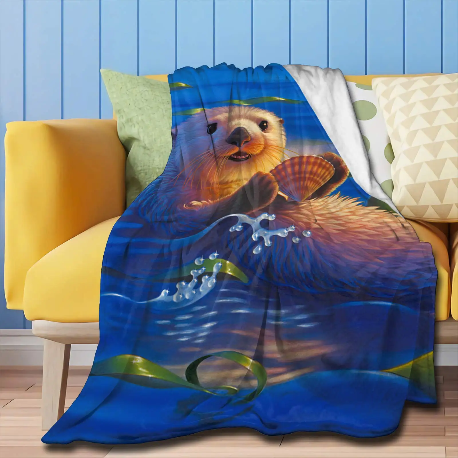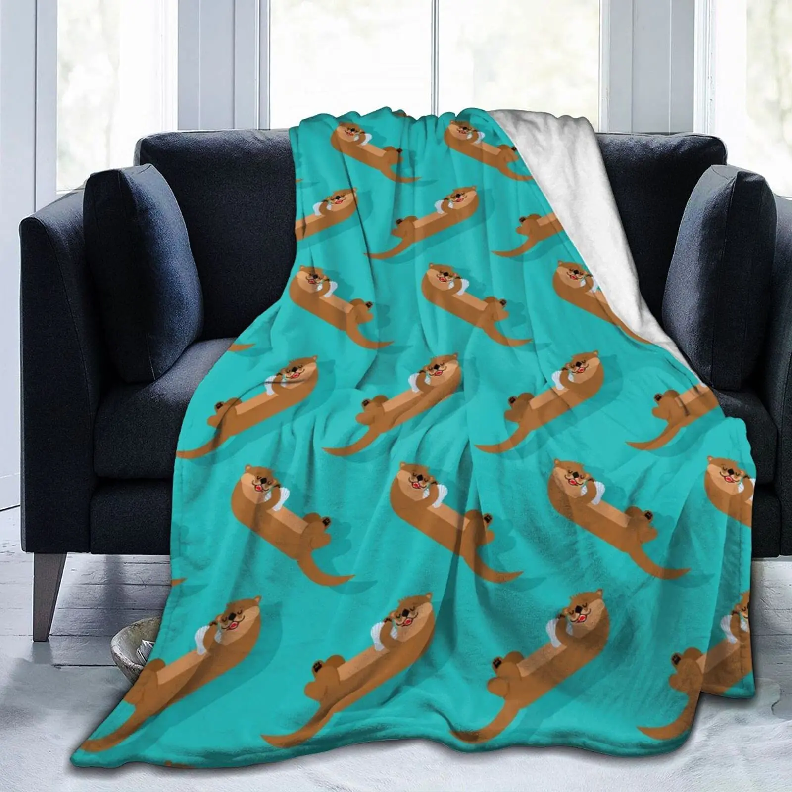 Sea Otters Throw Blanket,Green Small Flannel Lap Blanket Gifts for Kids,Fleece Sofa Cozy Noon Break Blanket for Office Couch Car