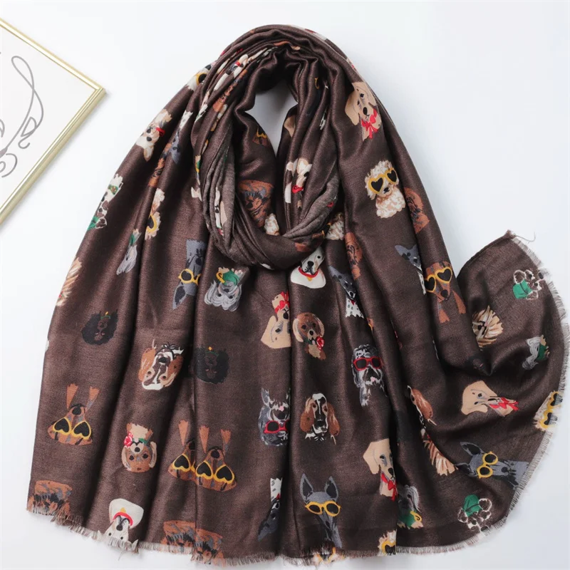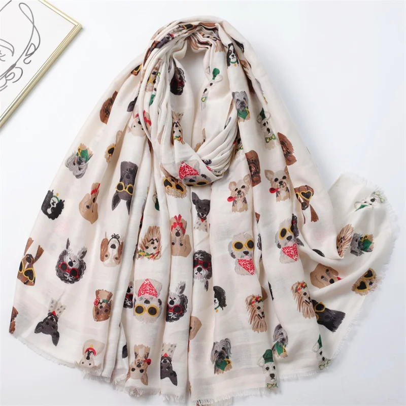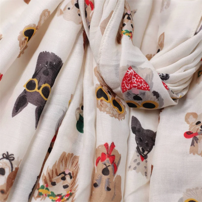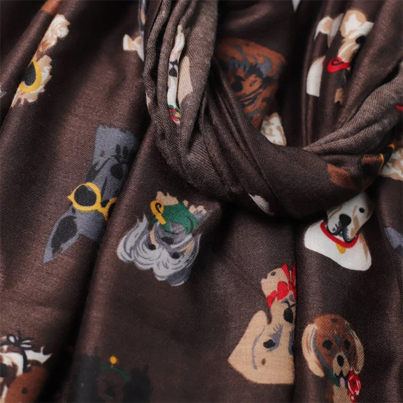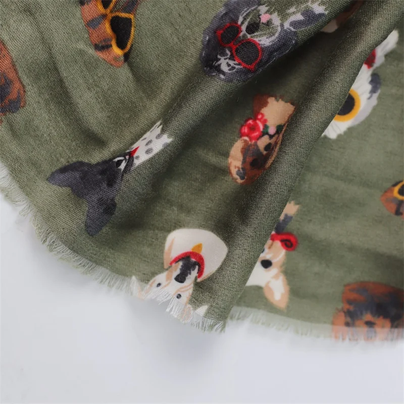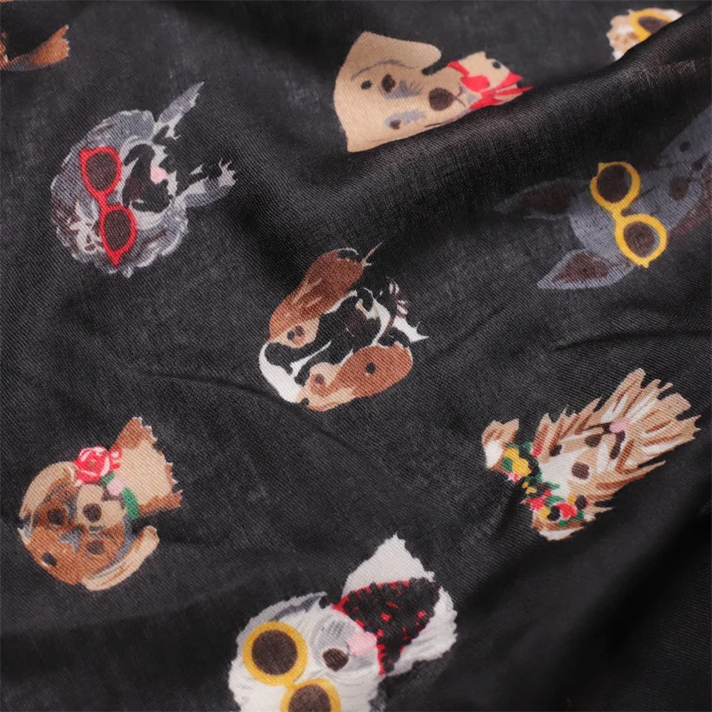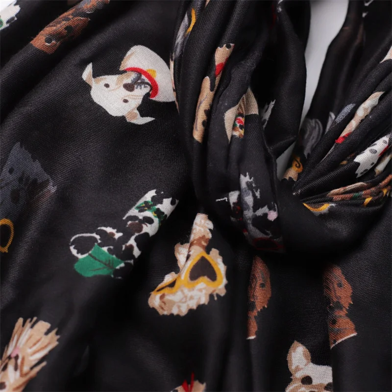 Winter Soft Thick Pashmina Shawl Scarf Dachshund Dog Pattern with Glasses Playful Kitten Design Viscose Hijab Charming Accessory